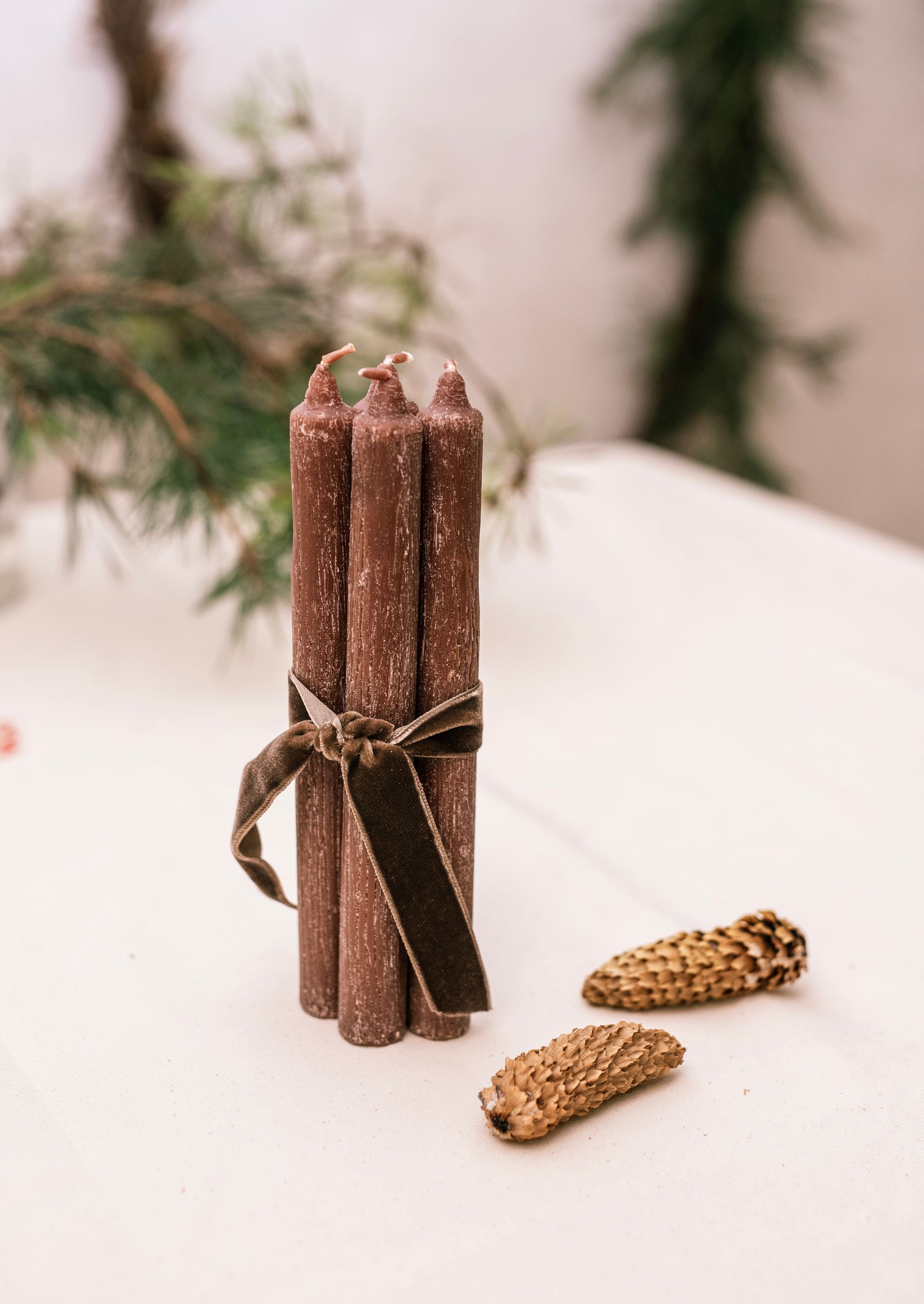 Lumânări rulate manual, din ceară naturală de albine sau lumânări parfumate din ceară de soia turnate în porțelan de colecție și sfeșnice recondiționate, în ton cu frumusețea și delicatețea celorlalte produse.
