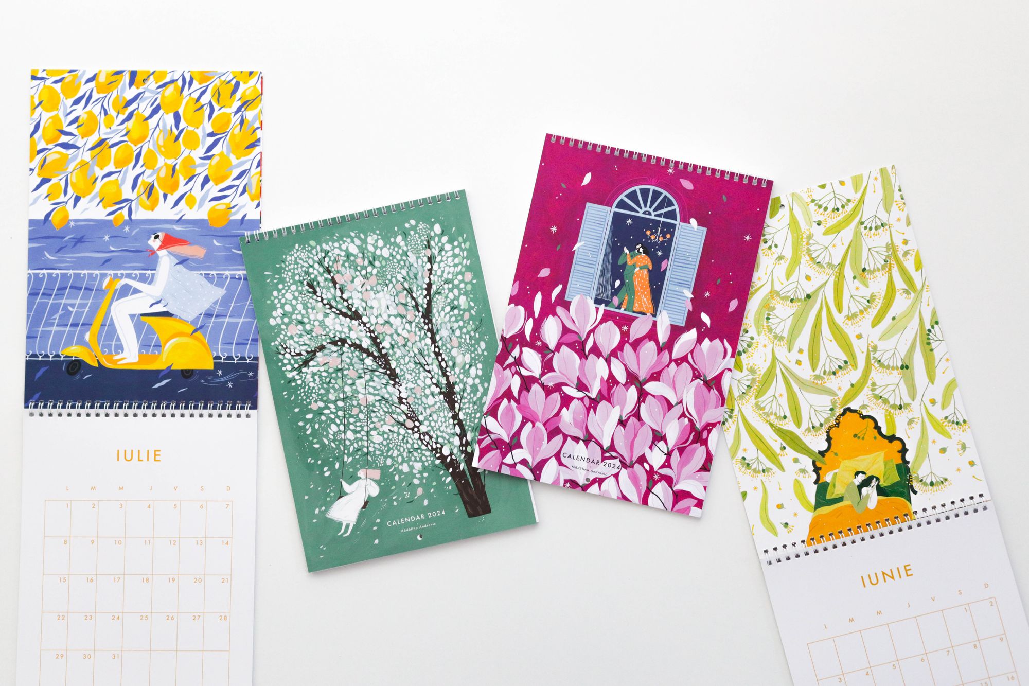 Calendar 2024 - Un produs 2 în 1 – nu doar un calendar de perete practic, ci și o colecție de 12 mini-ilustrații de înrămat după fiecare lună.
