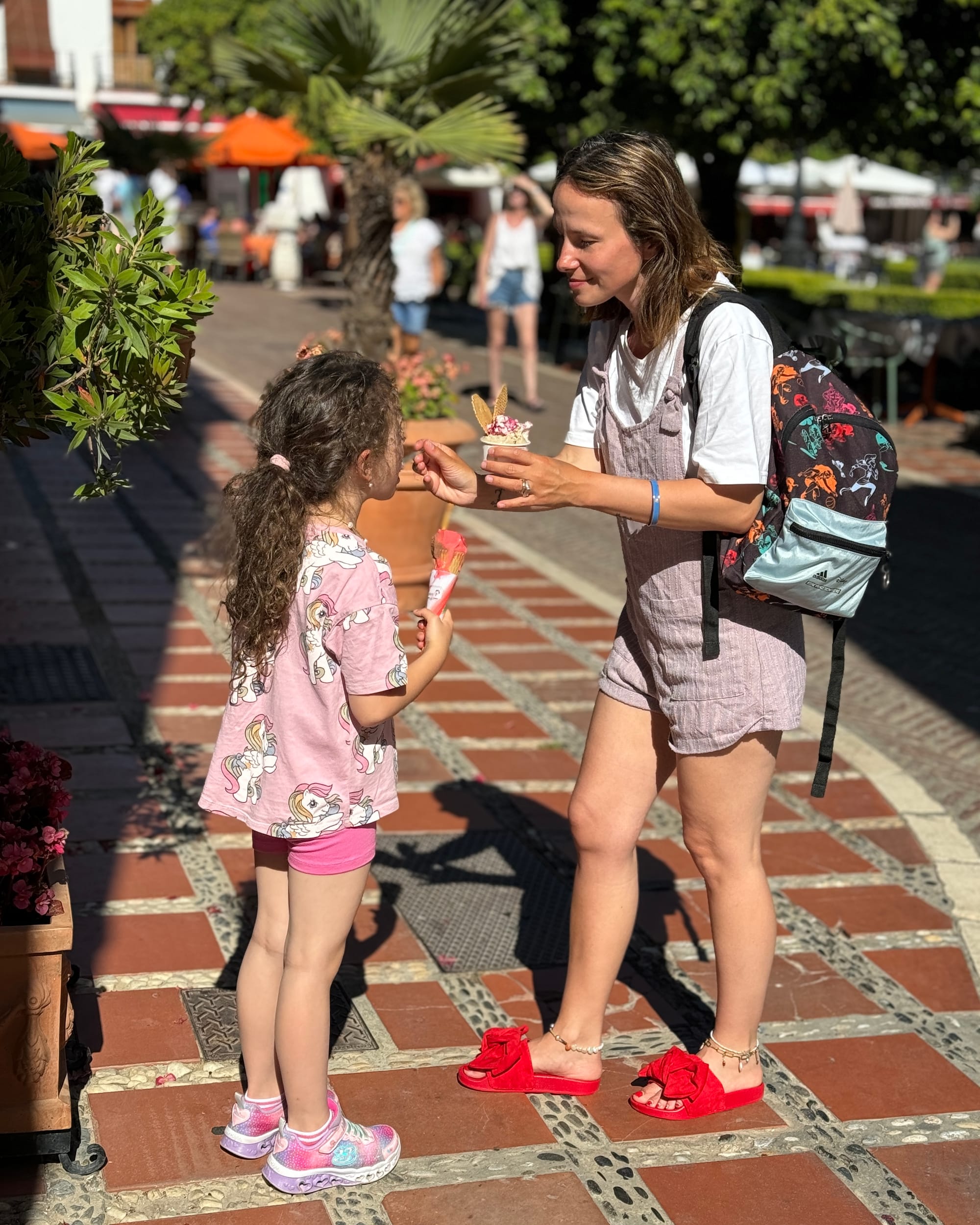 Last Friday, we spent the entire afternoon in Marbella, taking pictures, laughing, eating pizza at a beachside restaurant, and strolling the lovely, crowded streets with locals and tourists. Rita and I both have our favourite activities.