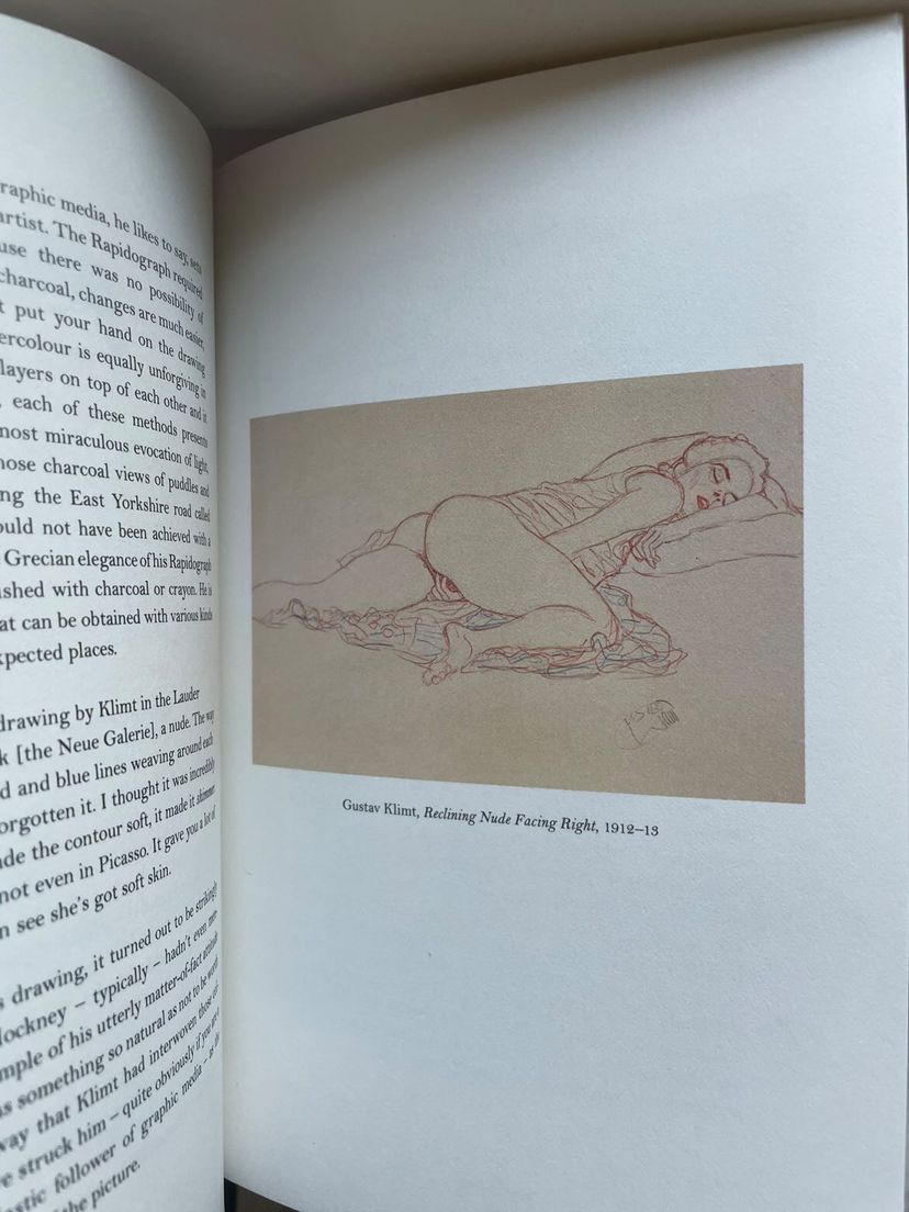 Citeam de curând o discuție între David Hockney și Martin Gayford despre linii (în desen). Hockney îi dă ca referință o lucrare a lui Klimt - Reclining Nude Facing Right - referindu-se la felul în care se îmbină liniile și cum efectul nu este doar de contur fin, dar aproape dă strălucire și te face să vezi că femeia din desen are pielea fină. Când Gayford a căutat referința a fost surprins de cât de erotică e lucrarea și a remarcat că Hockney nici măcar nu a pomenit acest aspect, căci asta e o atitudine normală și sănătoasă în raport cu sexualitatea, e ceva absolut firesc care nu merită menționat.