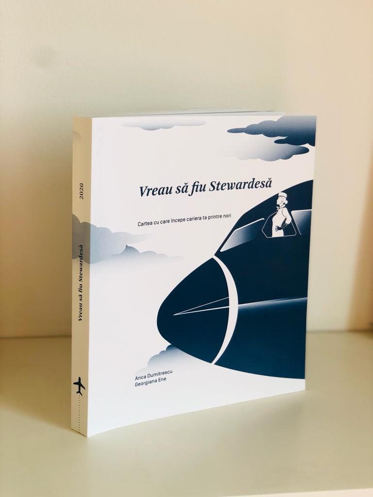 Anul trecut, în octombrie 2020, am reunit toată experiența și cunoștințele acumulate în domeniul aviației din 2013 până în prezent în cadrul cărții Vreau să fiu Stewardesă, o carte-manual ce conține 240 de pagini de informații extrem de utile pentru orice tânăr care visează să lucreze pentru o mare companie aeriană și să zboare în jurul lumii.