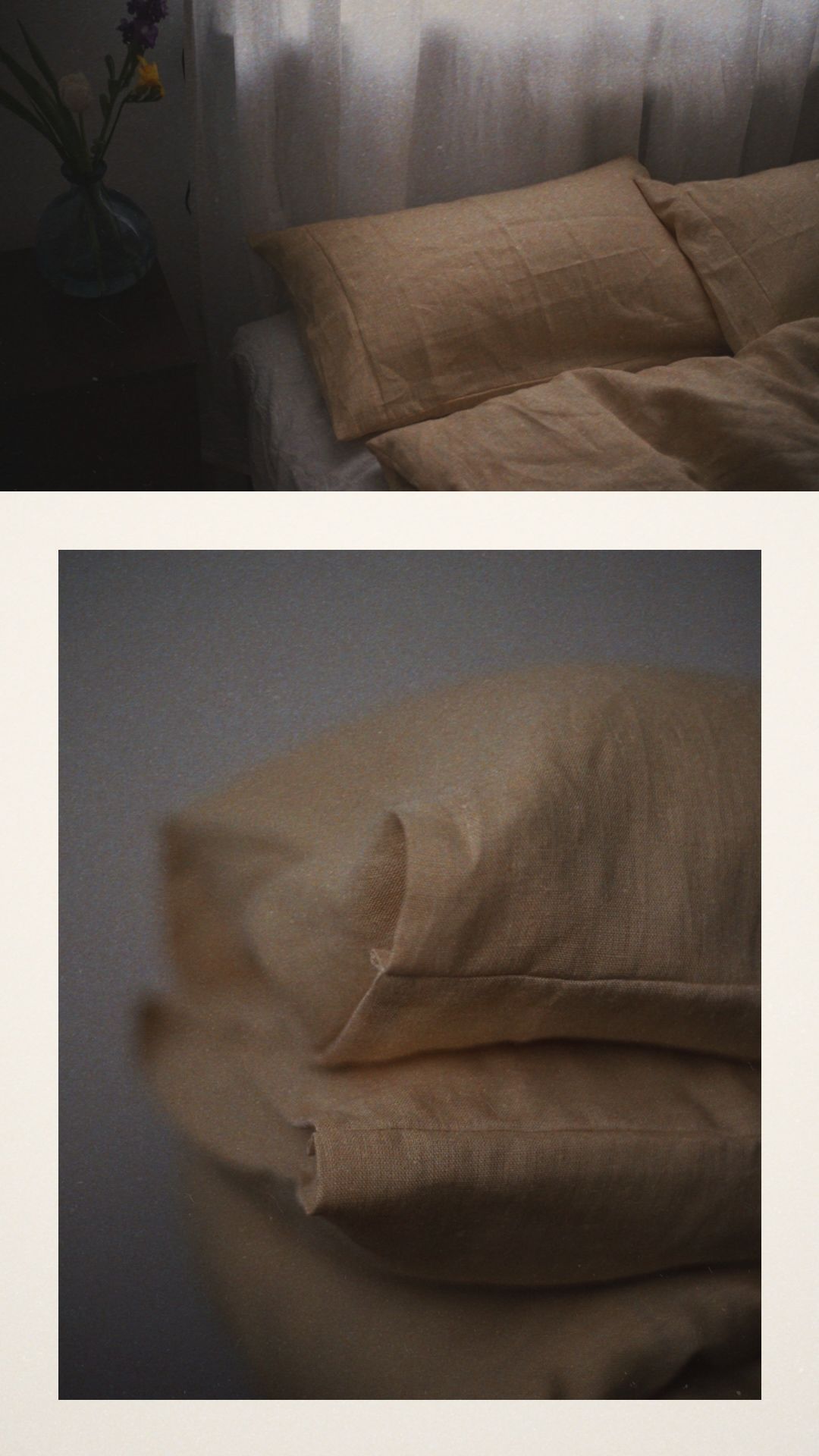I made the base fabric out of linen. The authentic and textured linen fabric is unbleached; it is organic from cultivation to production.