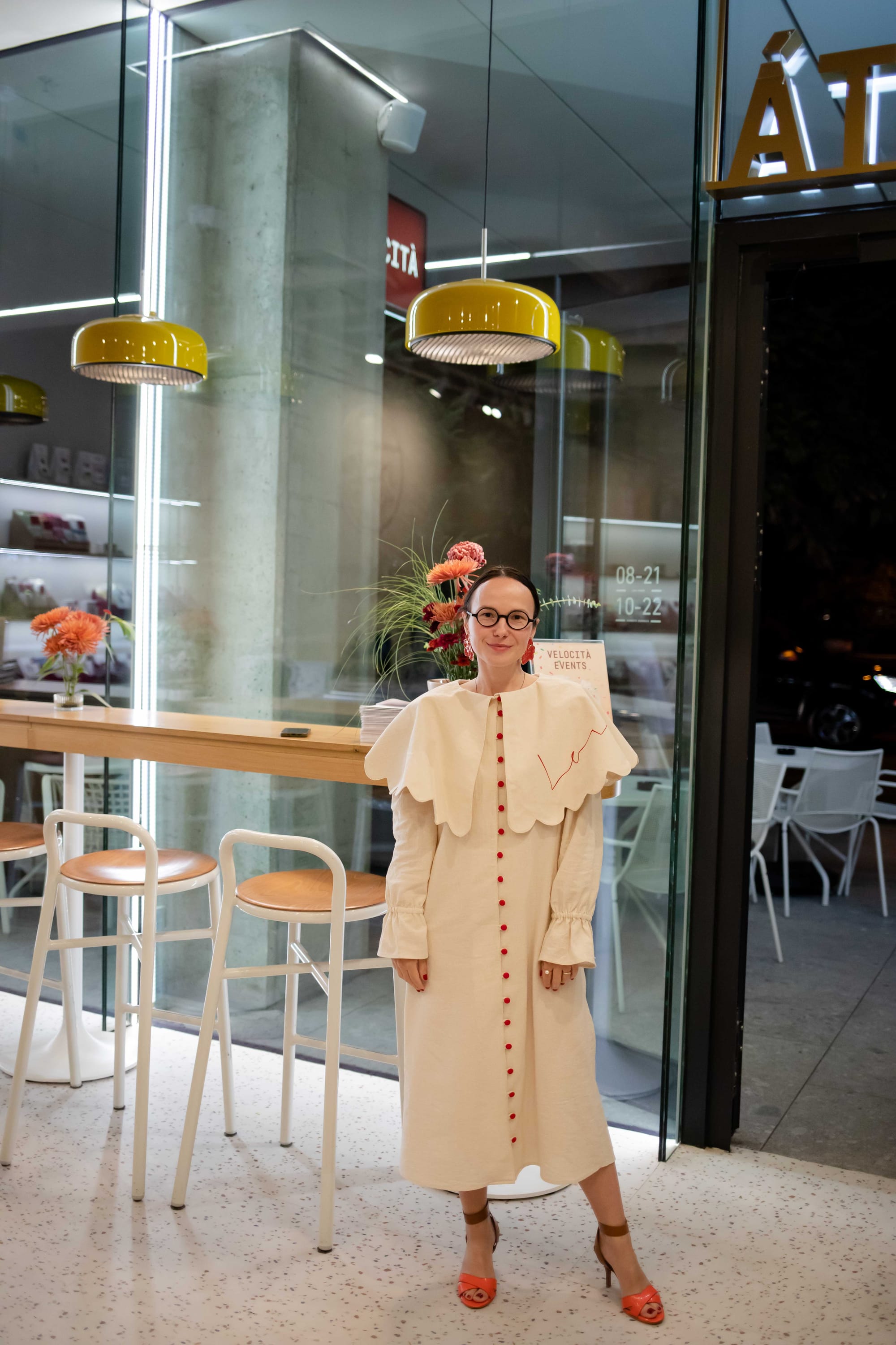 Dar am "răzbunat" această greșeală în octombrie, când am rugat-o pe Diana să îmi transforme o bluză de-ale ei într-o rochie. Adică cea din fotografia de mai jos. Am purtat-o la ediția a treia a evenimentului Connecting Women Entrepreneurs, alături de cercei roșii realizați de Diana Cojocaru.
