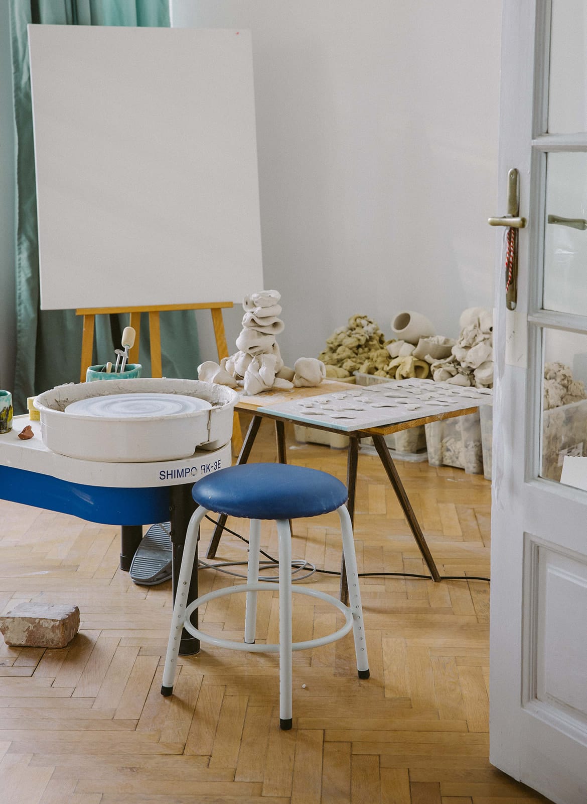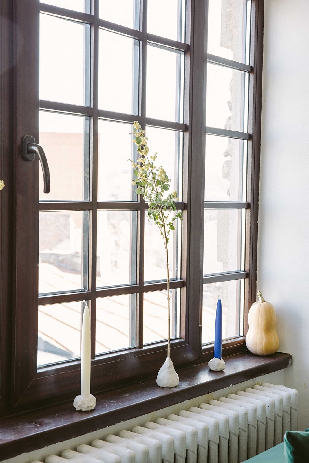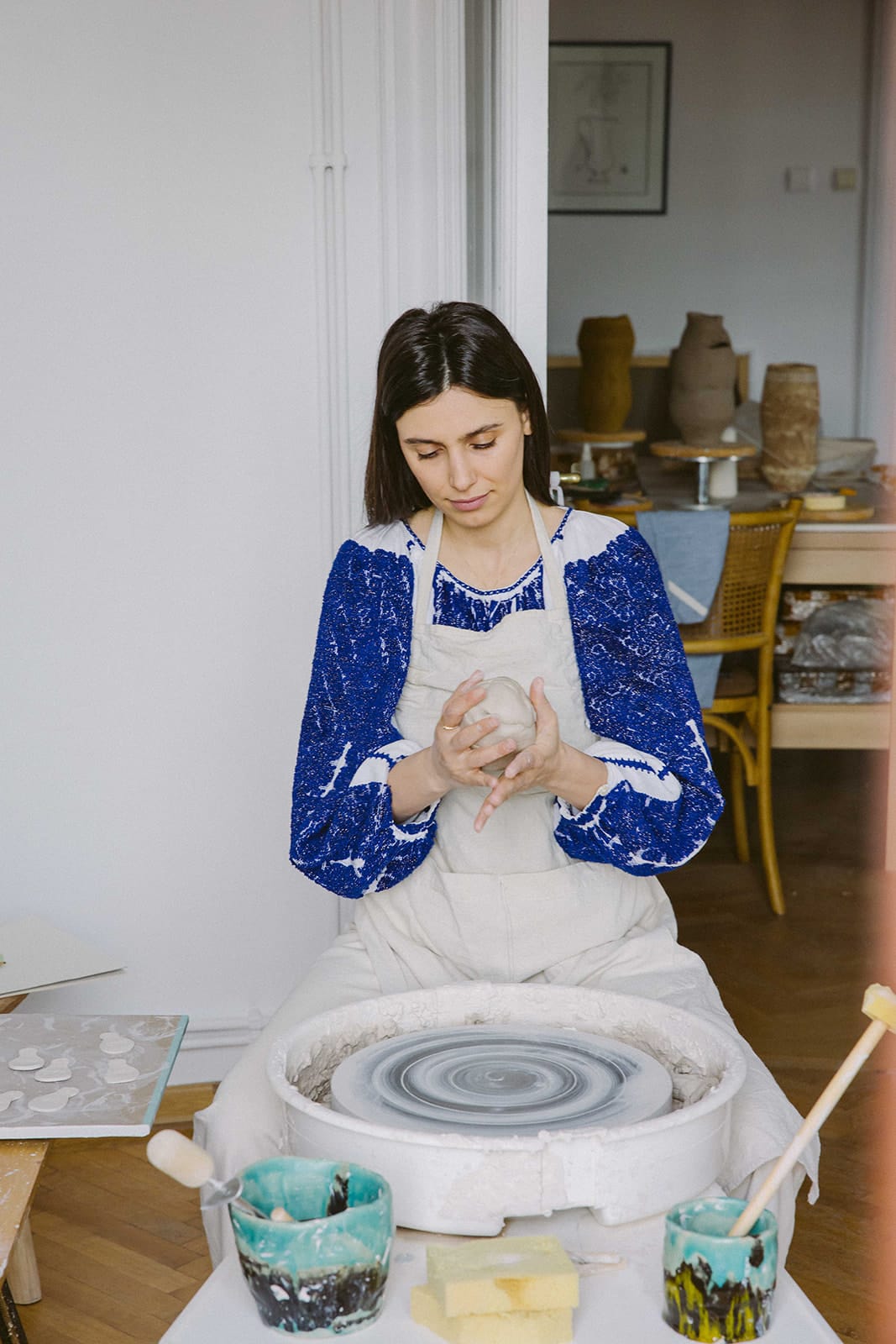 My studio is based in central Bucharest in a 1930s building. It has character, featuring original elements like patinated wooden floors, wide windows, and charming architectural details. It became a co-creator in my process; that's why I have decided to organise an offline event here, called Open Doors Studio, 3–4 times per year. A different meet-and-shop vibe.