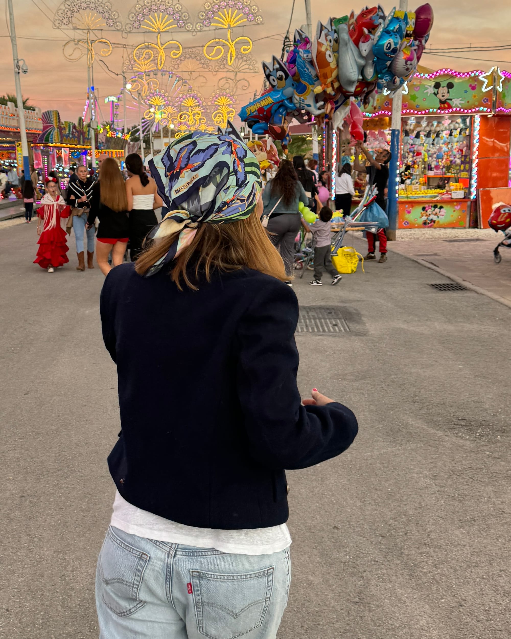 A silk scarf is more than an accessory now more than ever. Since our arrival in Costa del Sol last year, silk scarves have become my go-to companion for shielding my hair and forehead from the intense sun.