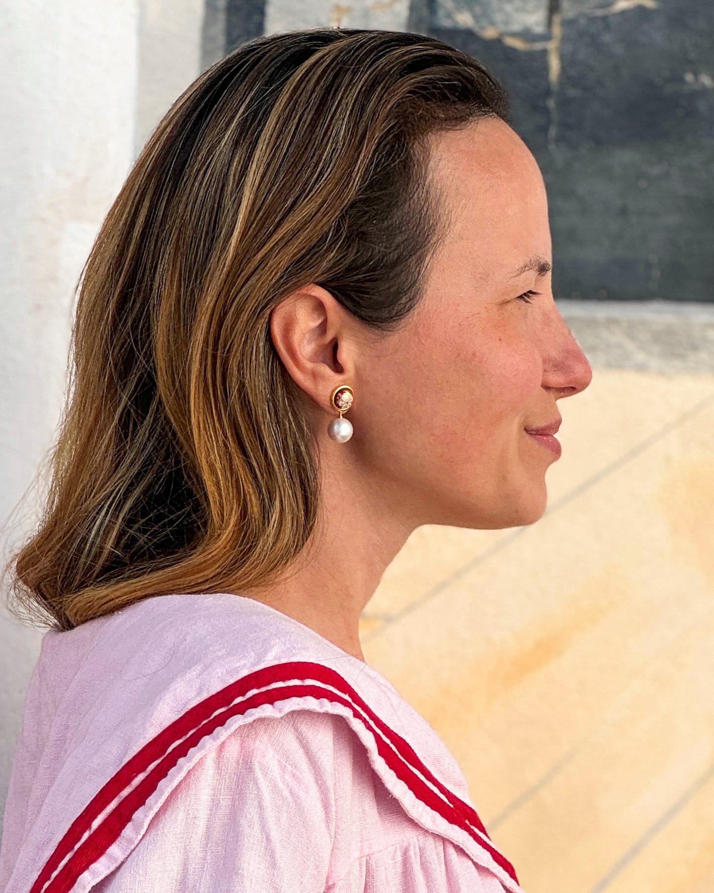 FREY WILLE Ocean drops, L’amandier rouge éclat earrings worn with or without the pearls