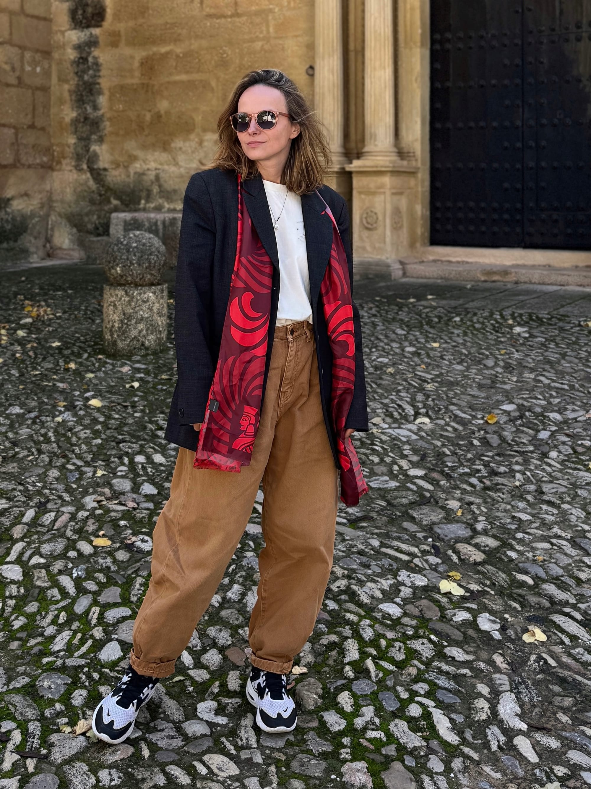 At this age, I have courage like never before, so regardless of where my feet wander, whether it’s the art-filled corners of Genalguacil, my mountain home; the beautiful and touristic Marbella, the full of history Ronda, or the cosy San Pedro de Alcántara, certain elements remain constant. My jewellery and scarves have followed me through every transformation, fitting seamlessly into every version of me.