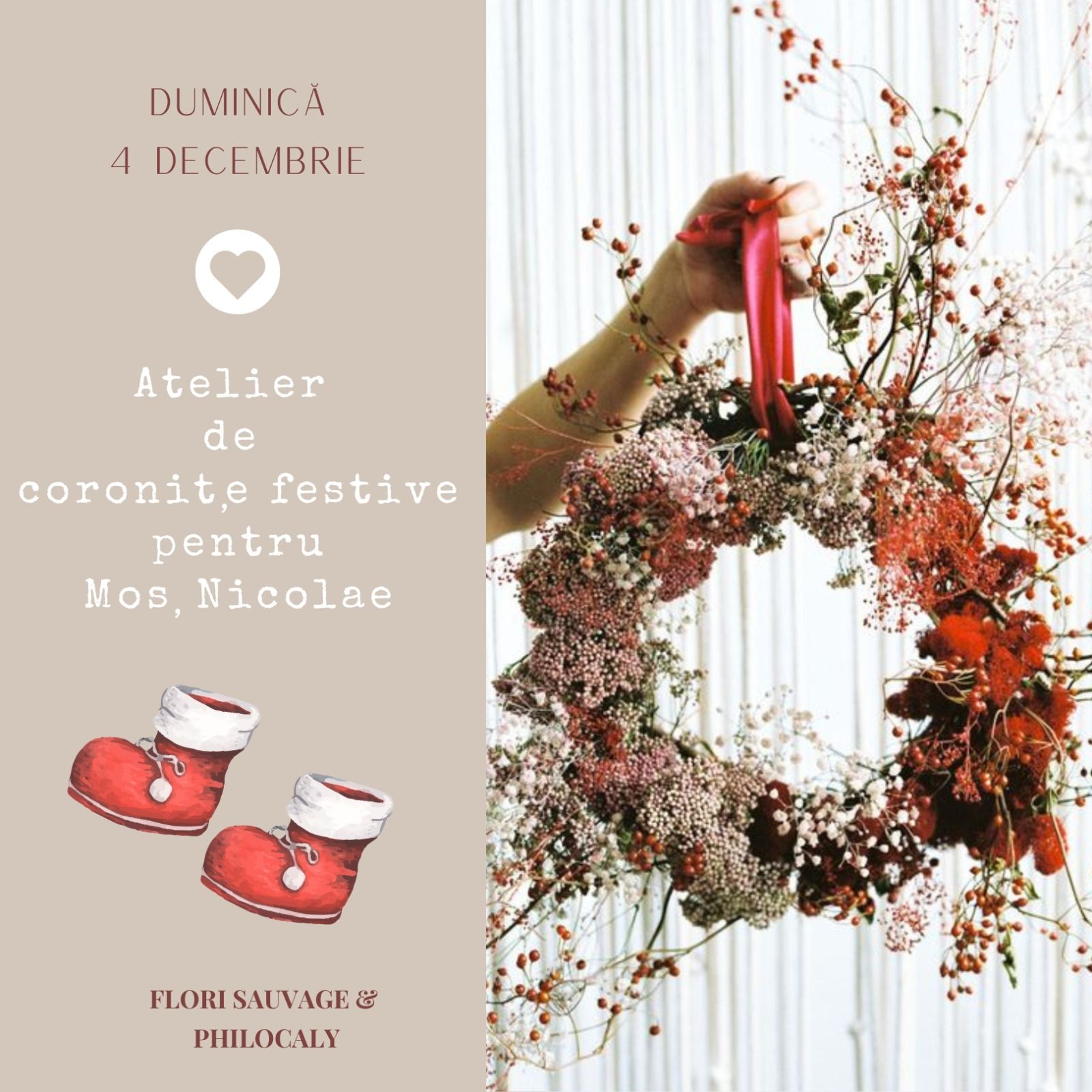 Duminică, 4 decembrie, ora 11:00 – Atelier de coronițe festive pentru Moș Nicolae,la Philocaly, unul dintre locurile minunate din București, parte din Campania #MusaideVizitat