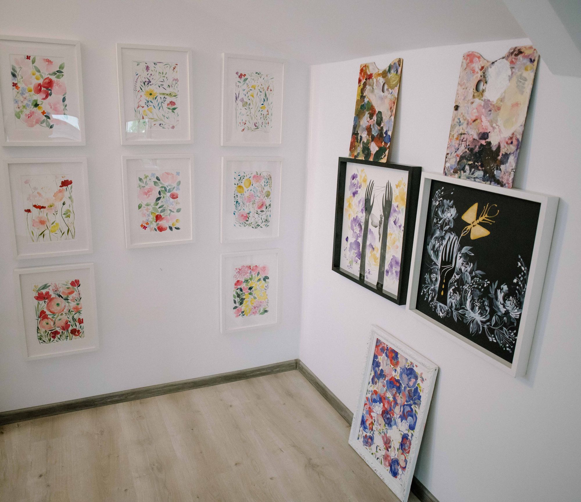 Pe site-ul MarieNouvelle sau la showroom, mai găsești globuri pictate manual de Maria, tablouri de-ale ei, fie în format canvas și paper, fie picturi originale, agende, genți și portofele.