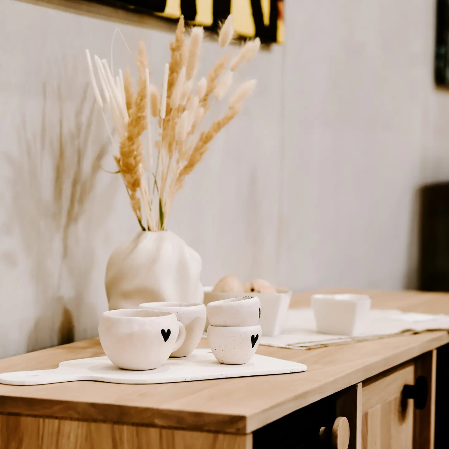- Ceramica cu inimi produsă în colaborare cu Victoria Finala: cești cafea, farfurii, vaze