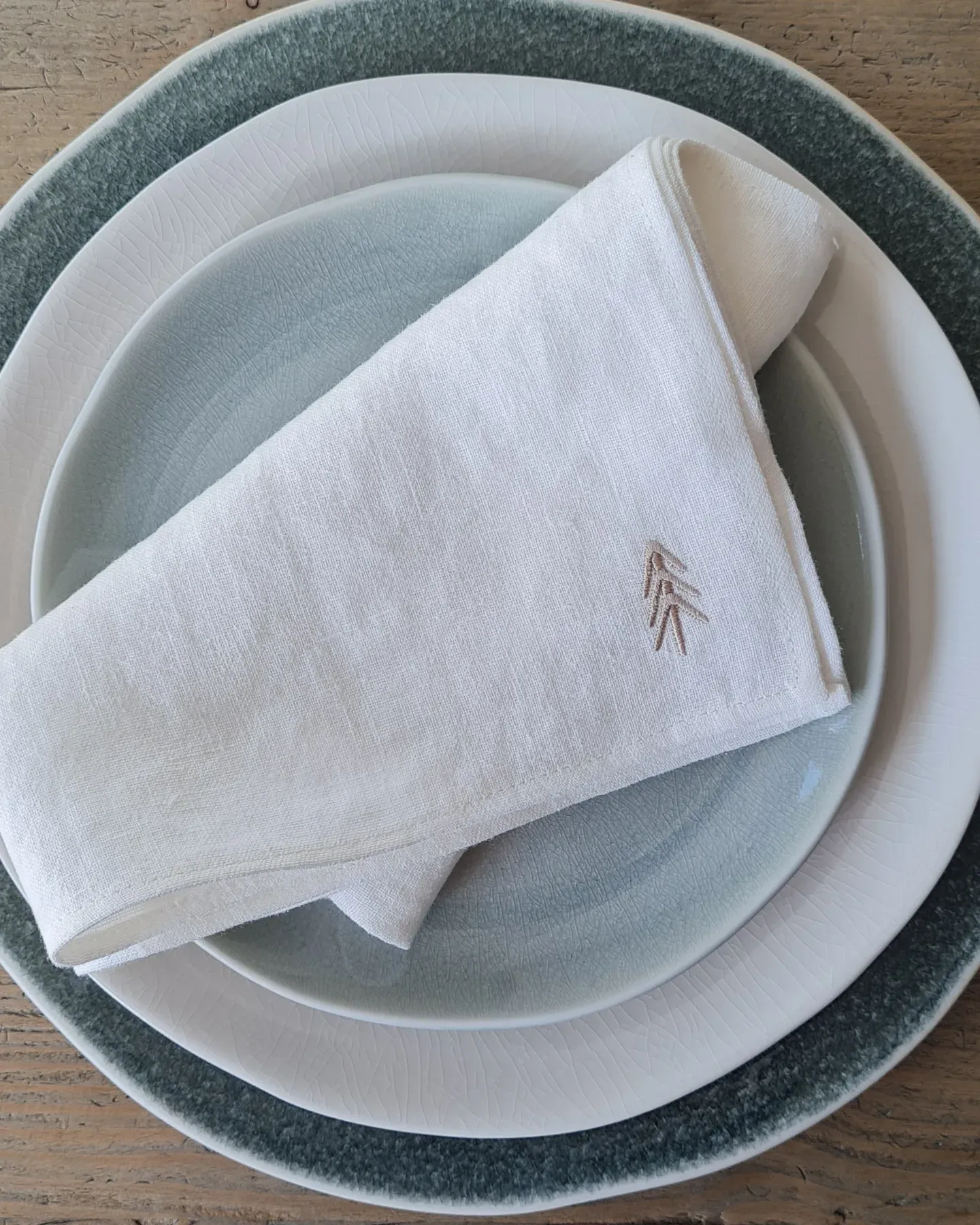 Șervete din in cu broderie brăduț, traversă din in cu broderie brăduț, fețe de pernă din in, cuvertură bumbac pentru pat/canapea - toate marca INLIN. Eu am câteva șervete de masă achiziționate de la ei, și sunt un vis frumos.