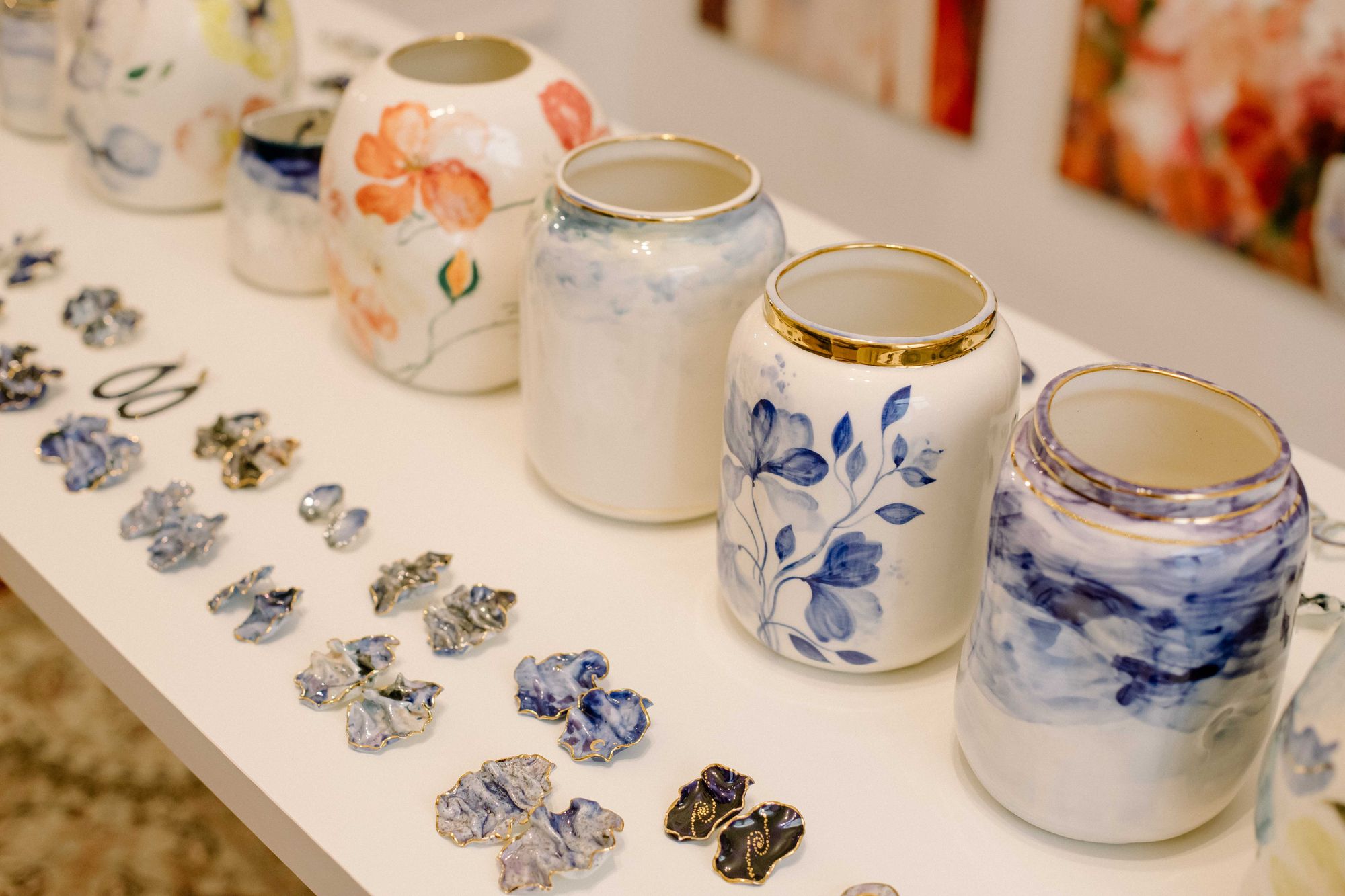Universul ei creativ include, pe lângă bijuterii, așa cum am mai povestit pe blog, și tablouri, eșarfe din mătase cusute manual și vaze care sfidează perfecțiunea.
