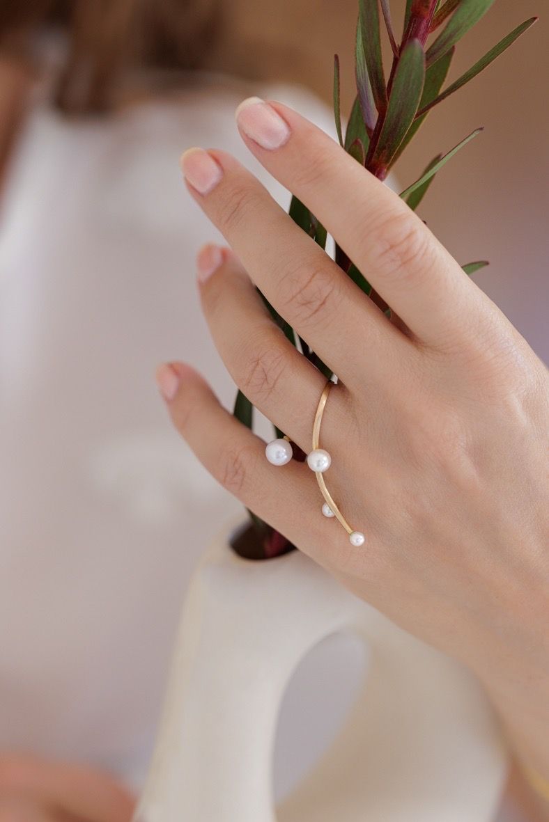- Double Finger Pearls Ring 14K Gold