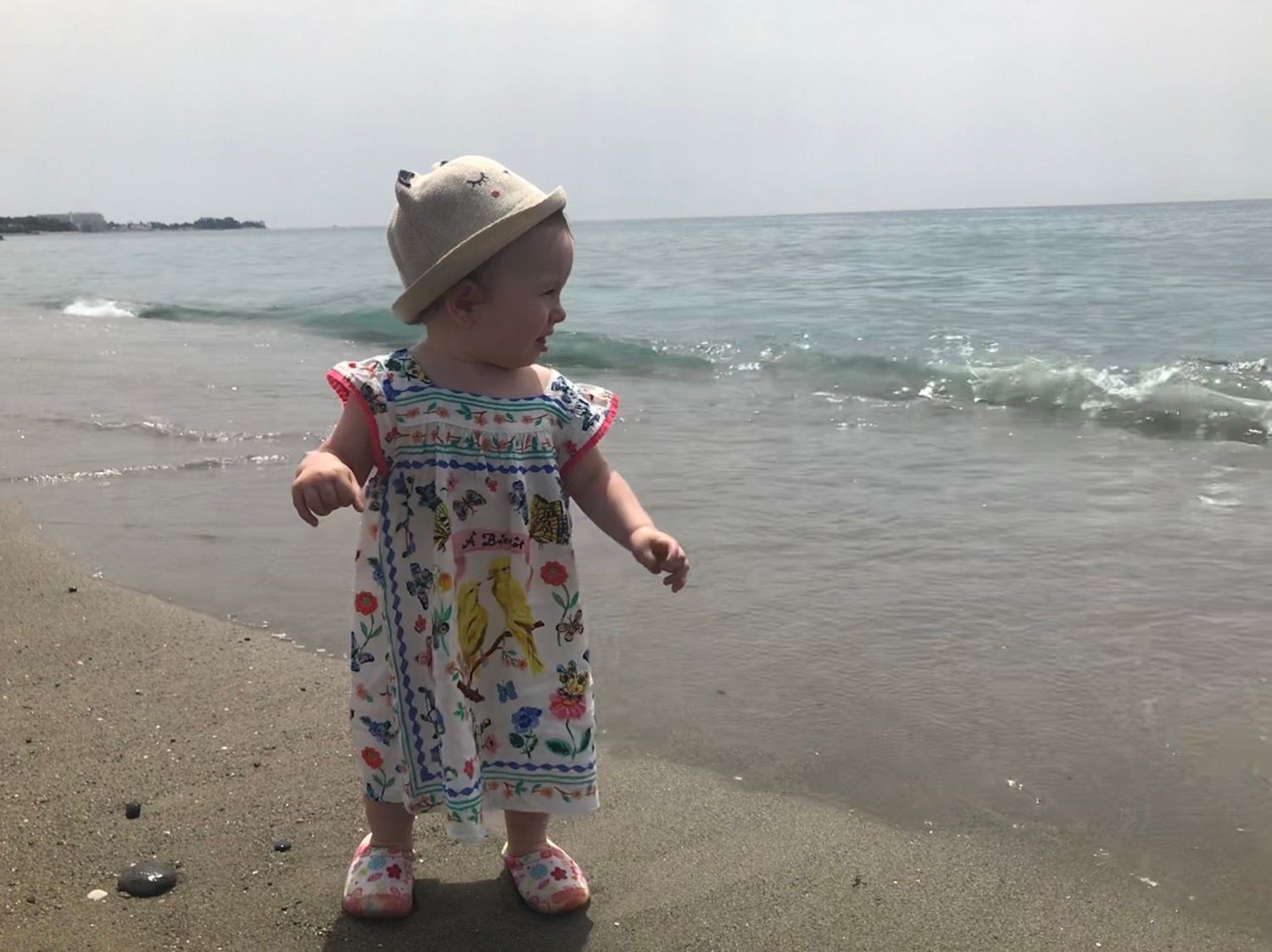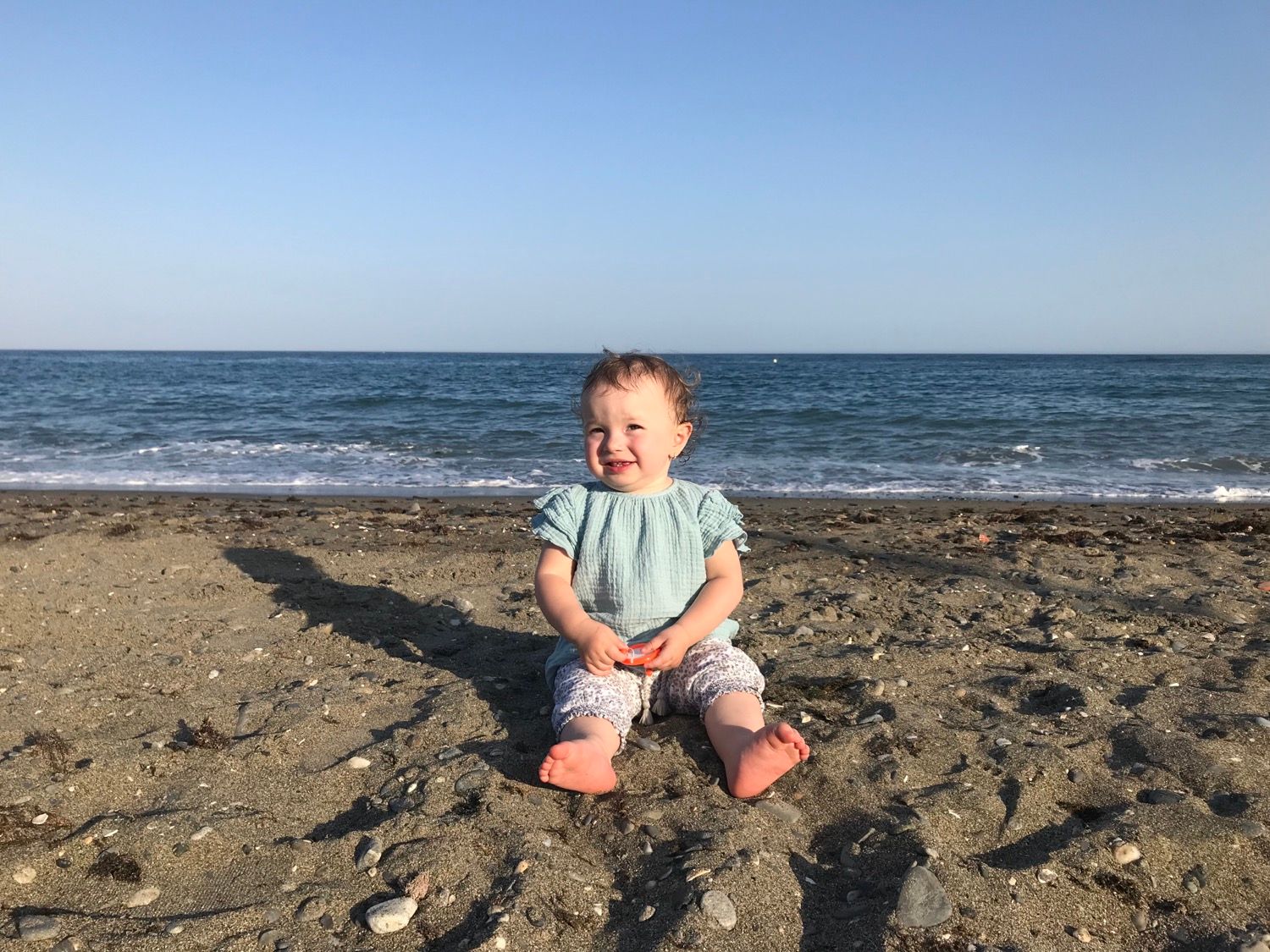 • plaja e acoperita cu pietre, iar nisipul deloc fin. Ne-a ajutat foarte tare ca am luat cu noi pentru Rita pantofiori speciali pentru aceste situatii