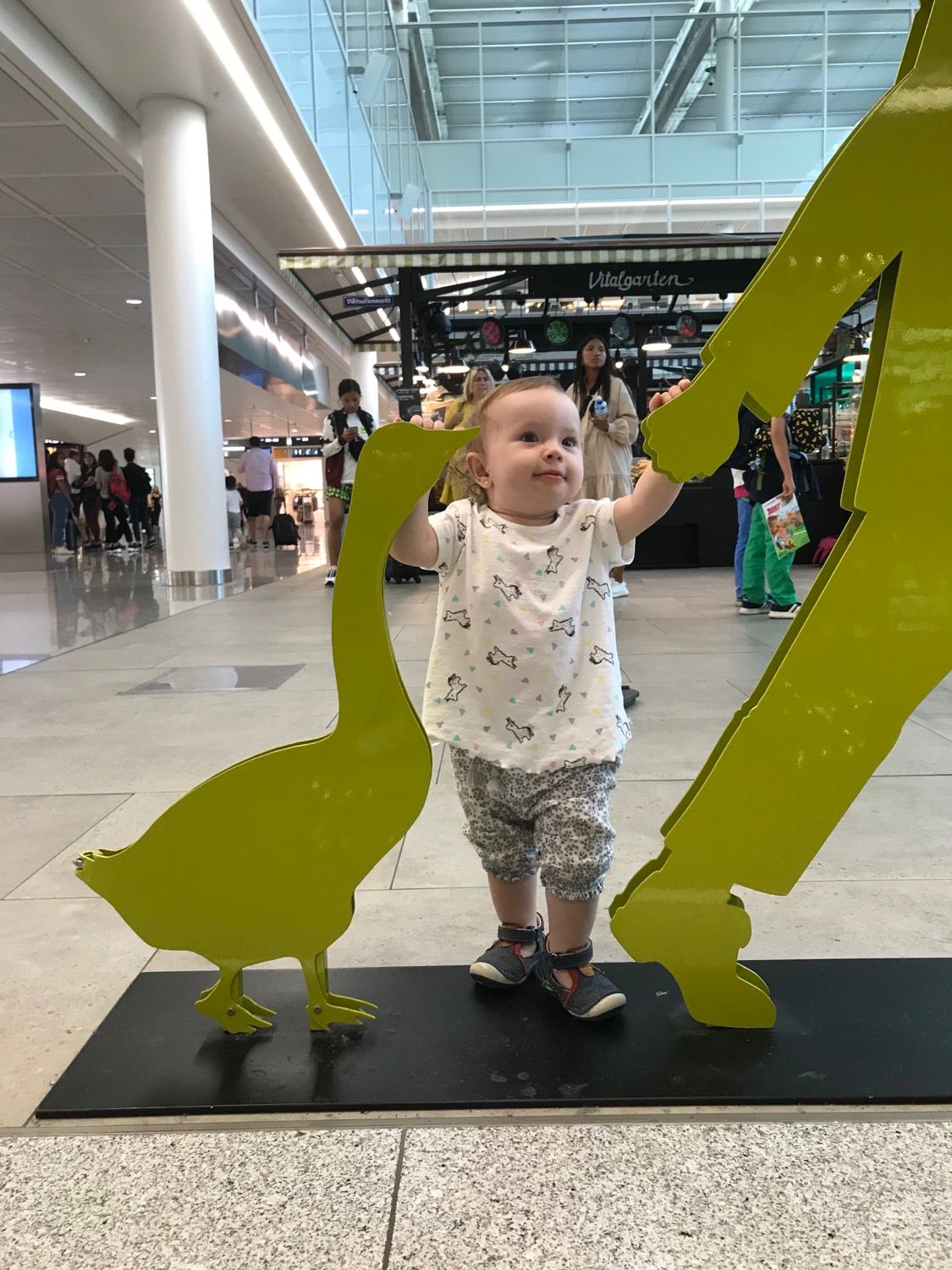 • aeroporturile au fost destinatii yeyyyyy pentru Rita si neyyy pentru noi, care am fugit dupa ea, am luat-o pe sus din magazine (voia, desigur, sa traga de tot si toate), a plecat cu trolerul unei fetite, i-a bagat mana in plasa unui domn sa ii ia pachetul cu biscuiti, a fost fascinata de benzile rulante (am ametit de cate ture dus-intors am facut pe ele).