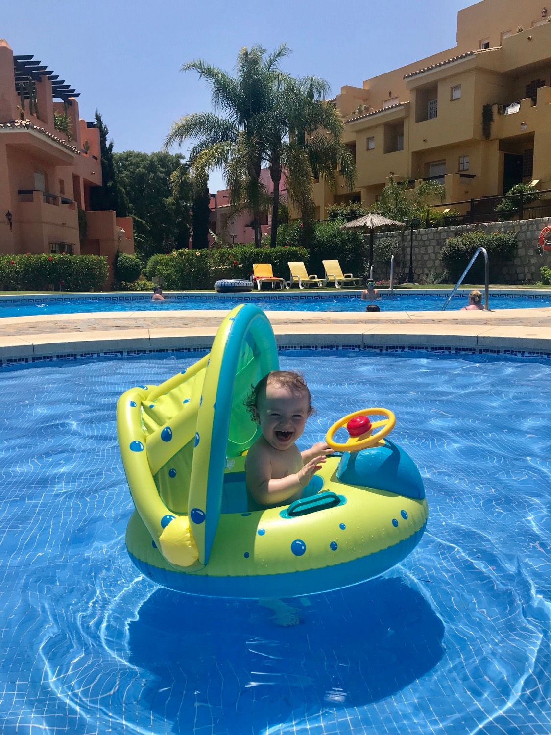 • nu am putut tine cont 💯de programul indicat pentru expunerea la soare, dar am avut noroc de zile nu foarte calduroase, unele chiar cu nori. In plus, Rita nu a rezistat niciodata mai mult de o ora la piscina, asa ca palarioara si crema SPF 50 si-au facut datoria chiar si la ora 12.