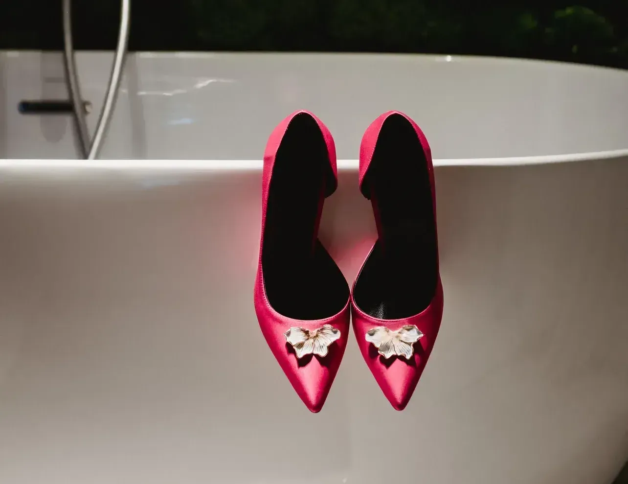My personal preference sits at the intersection of a classical satin Manolo and a Sophia Webster. Which is why some of our shoes come in plain satin (and are extremely beautiful and elegant as such), and others are adorned with an accessory that is unique.