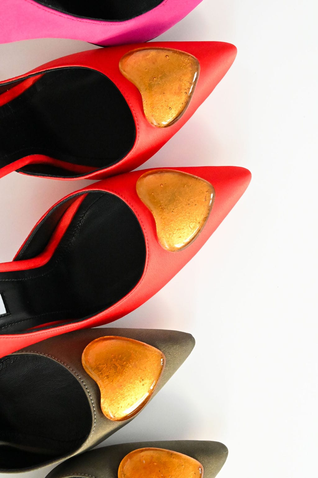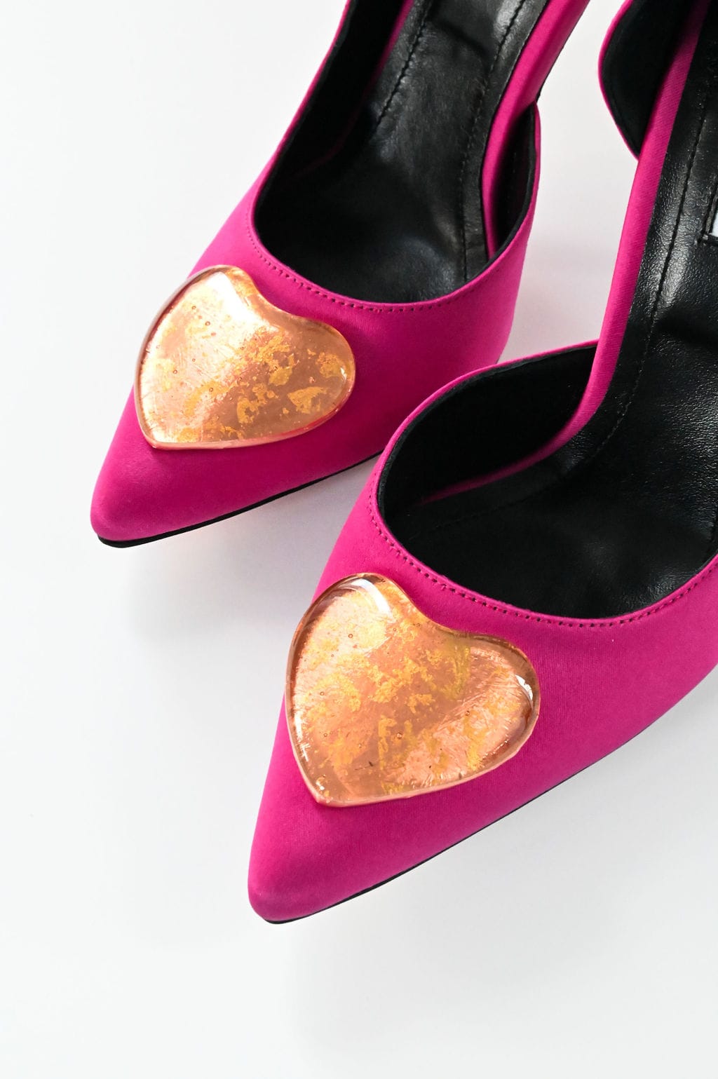 I only knew that I’d wanted a pair of fuchsia satin heels with unique accessories. Since I couldn’t find them on the market at the correct price, I decided to make them myself. And if other women would also find these shoes enticing, all the better.