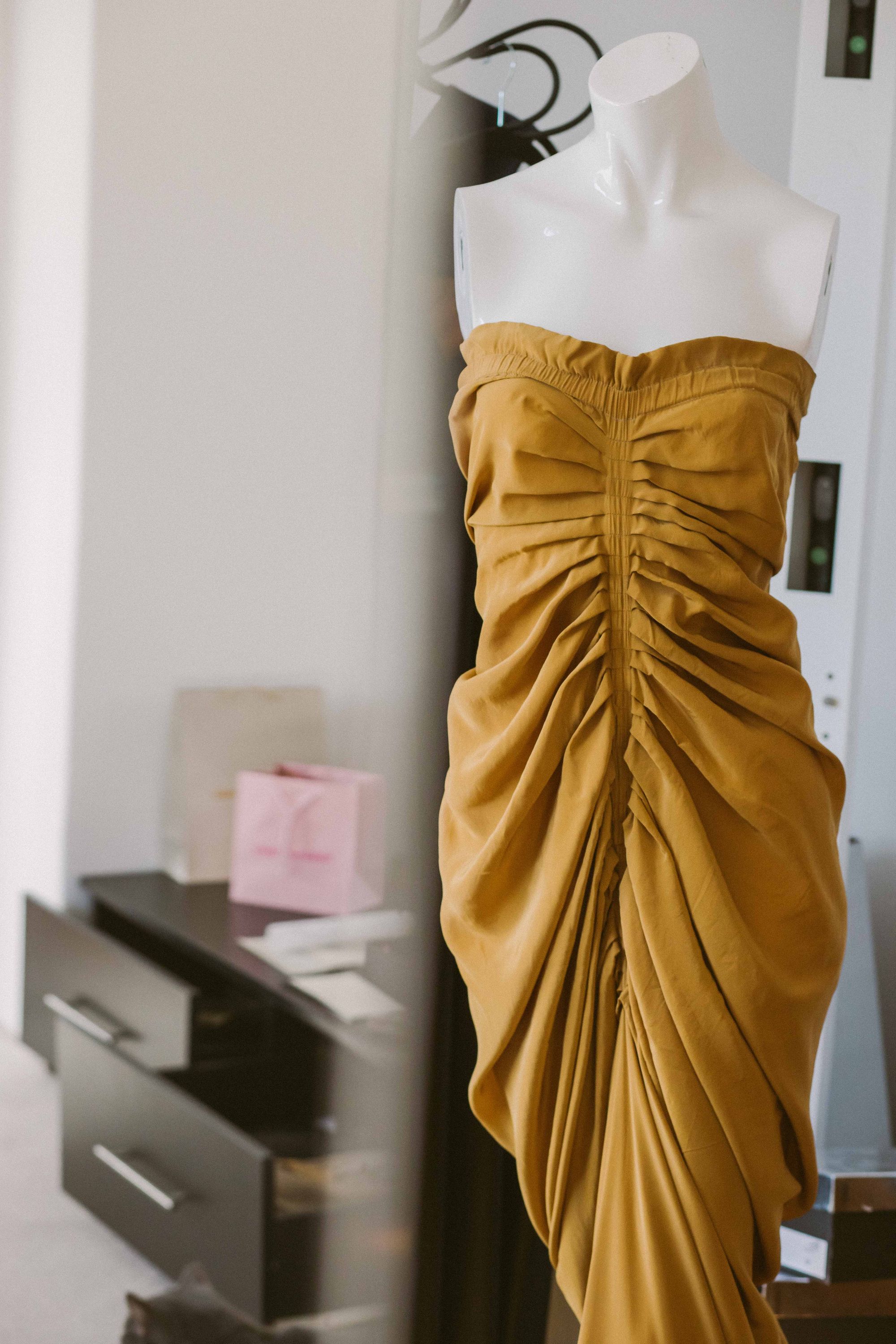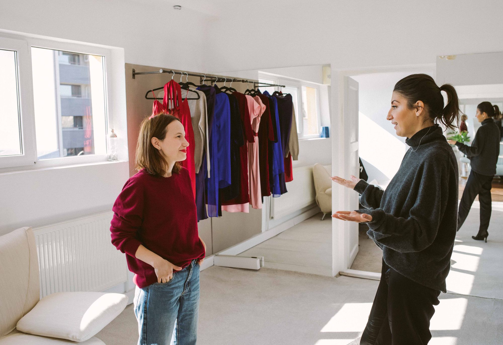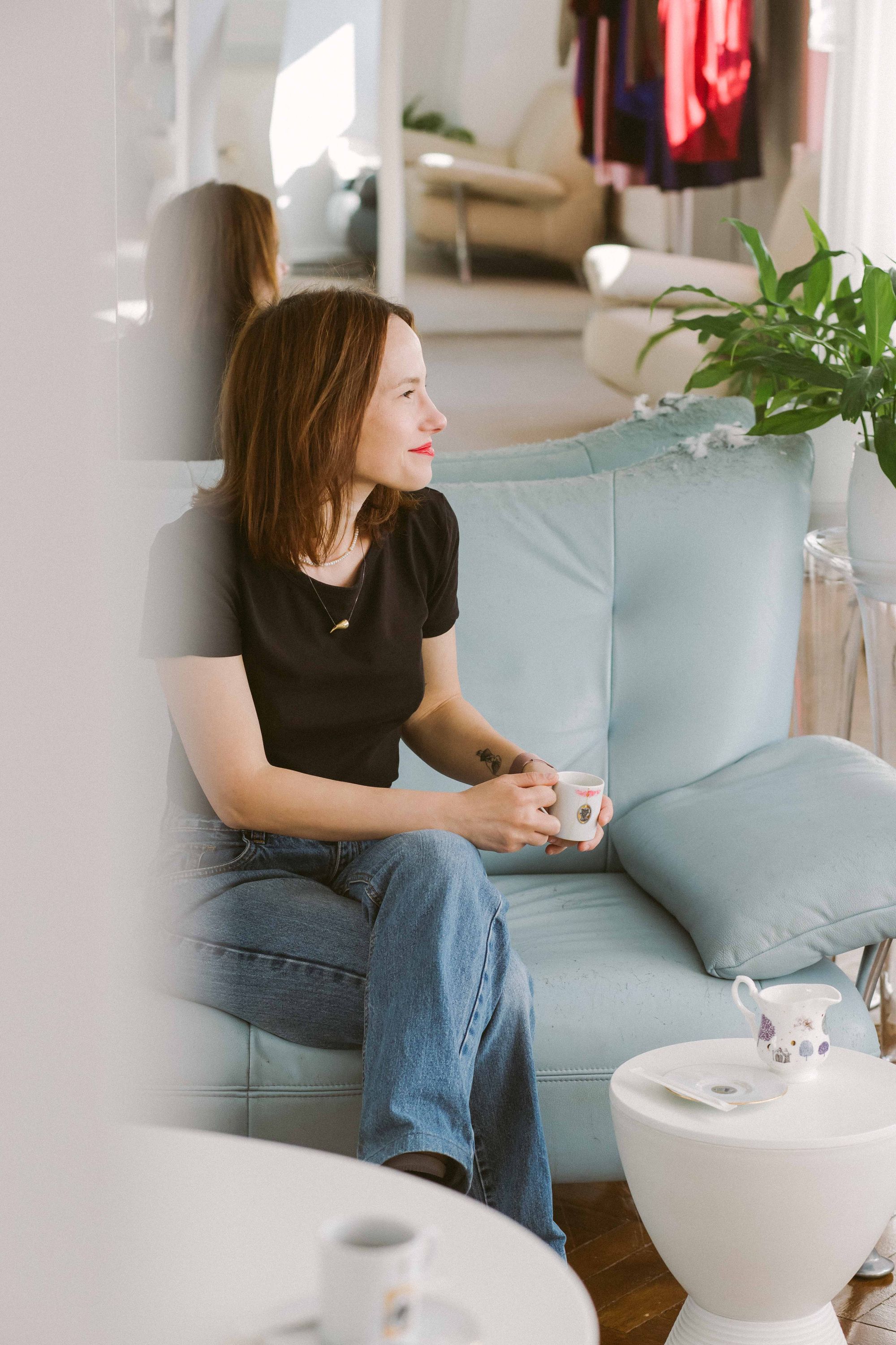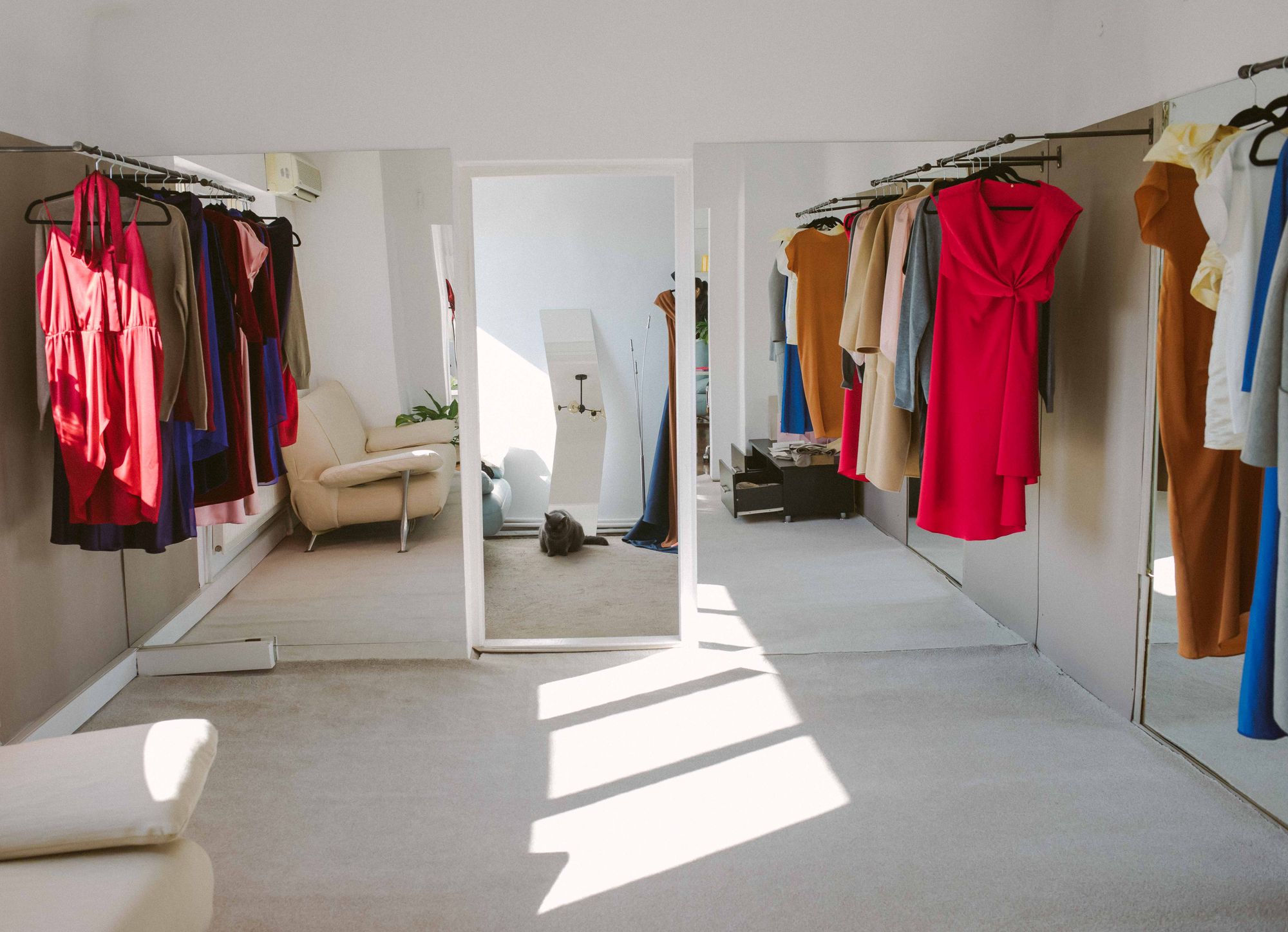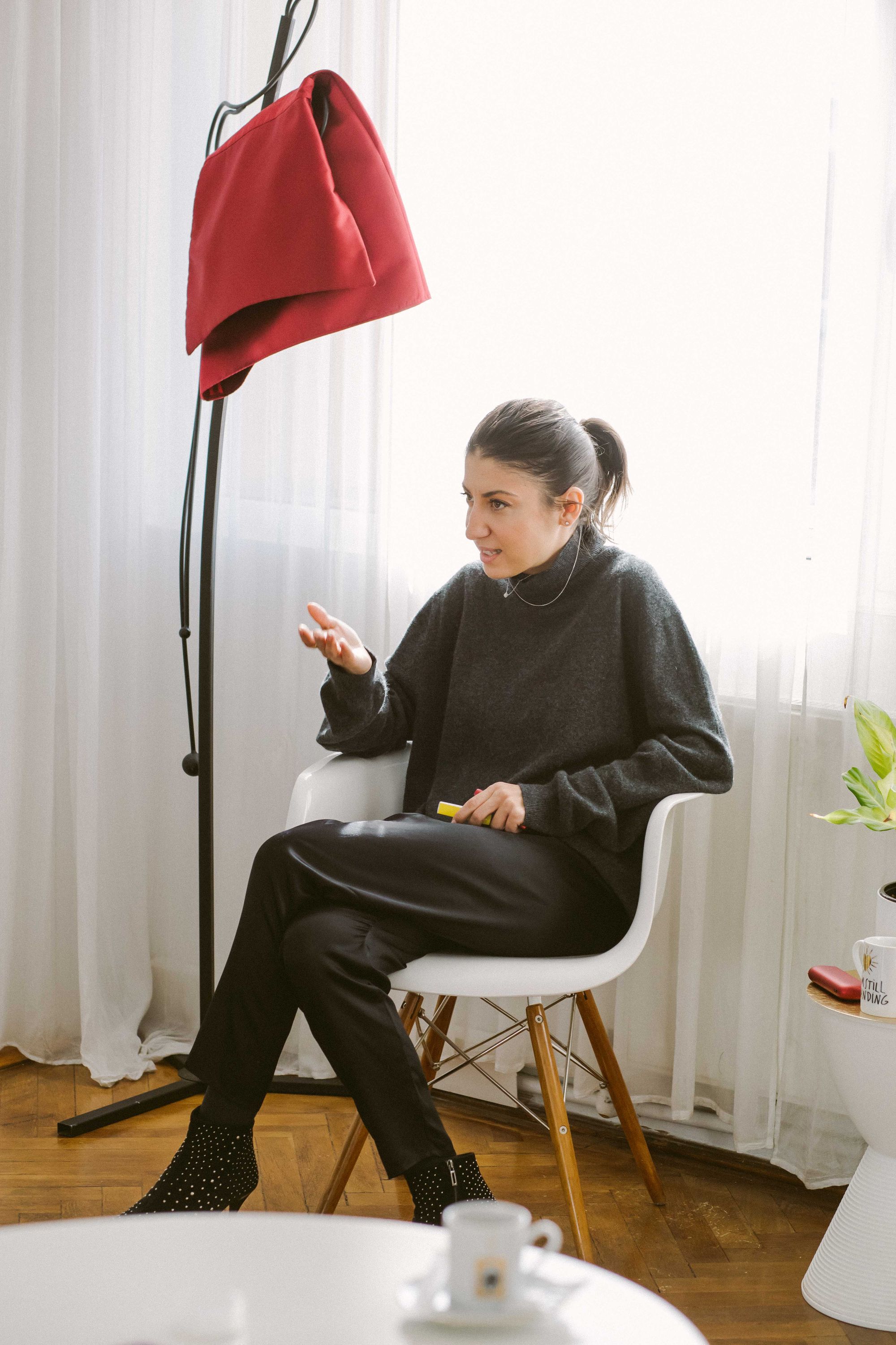 Aveam planificat să mă încadrez cu această vizită într-o oră. După două ore și jumătate, am plecat cu greu. M-am ridicat, cred, de vreo două ori să ies pe ușă, pentru ca mai apoi să mă așez din nou pe canapea pentru a o asculta pe Laura povestind despre copilărie și bunica ei care cosea haine, meșteșug pe care i l-a transmis, se pare, și nepoatei căreia îi plăcea să confecționeze ținute pentru păpuși; despre prima rochie pe care a modificat-o singură pentru balul de la școală, dar și despre cele pe care le-a creat ulterior în adolescență pentru diferite ocazii; despre matematica pe care a studiat-o intens în liceu și facultate, și jobul de la bancă, până la internship-ul pe care l-a făcut timp de 3 ani în atelierul unui alt designer, Adrian Oianu, și momentul în care a decis să pornească pe cont propriu.