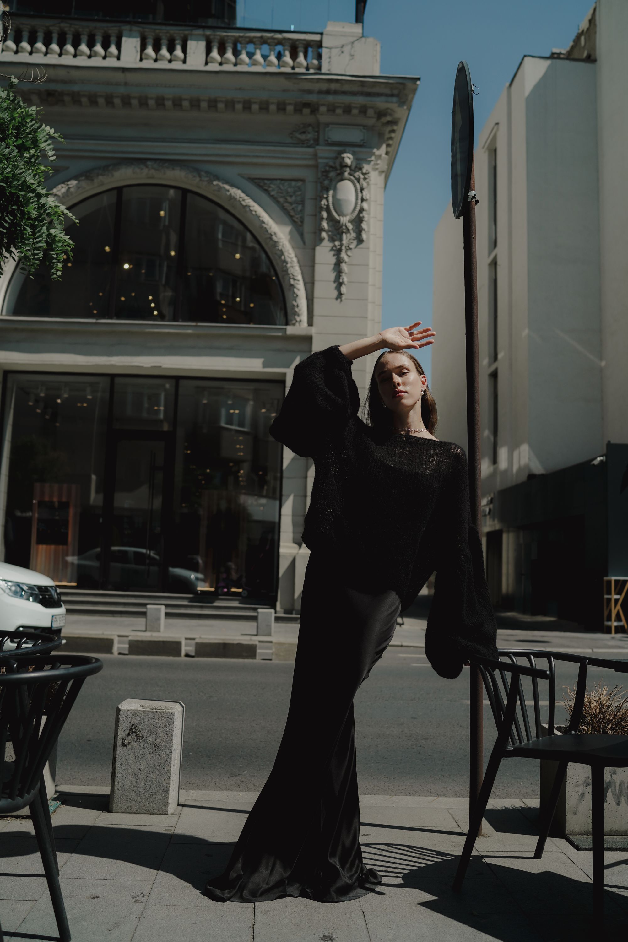 The AIRE FW’23 looks were designed to combine flowing silhouettes, layering, and a simple neutral palette to achieve an elegant subtlety—qualities accentuated by the historical streets of Bucharest where the pieces have been photographed for this campaign.