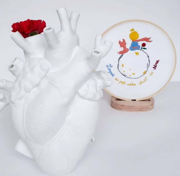 O broderie cu multe greșeli, stângăcii, panici și frici. Dar care avea o însemnătate deosebită. Era „Micul Prinț” – broderie devenită ulterior una dintre cele mai comandate. A fost daruită prietenei mele, Costina, un Om Bun și Frumos, care se luptă zilnic pentru ÎNCĂ O ZI. Pentru ea, dar și pentru mine, „Micul Prinț, vulpea și trandafirul” reprezintă bucuria Prieteniei adevărate.