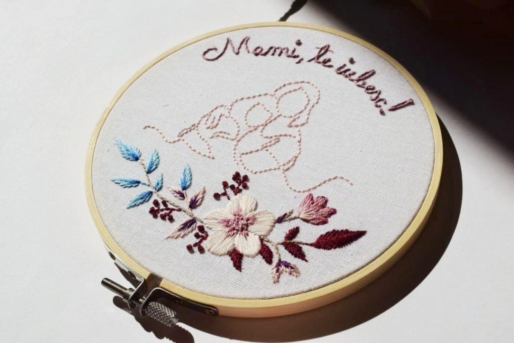 Simona: Broderia de mână poate fi așezată în orice context. Poți pune flori pastelate, inițiale, semne tradiționale, povești, practic pe orice material textil. Poți să creezi semne de carte, pandantive, bijuterii mici de orice fel, poți broda pe articole vestimentare sau chiar și pe piese de mobilier care sunt îmbrăcate apoi în materialul textil (canapele și fotolii, de exemplu).