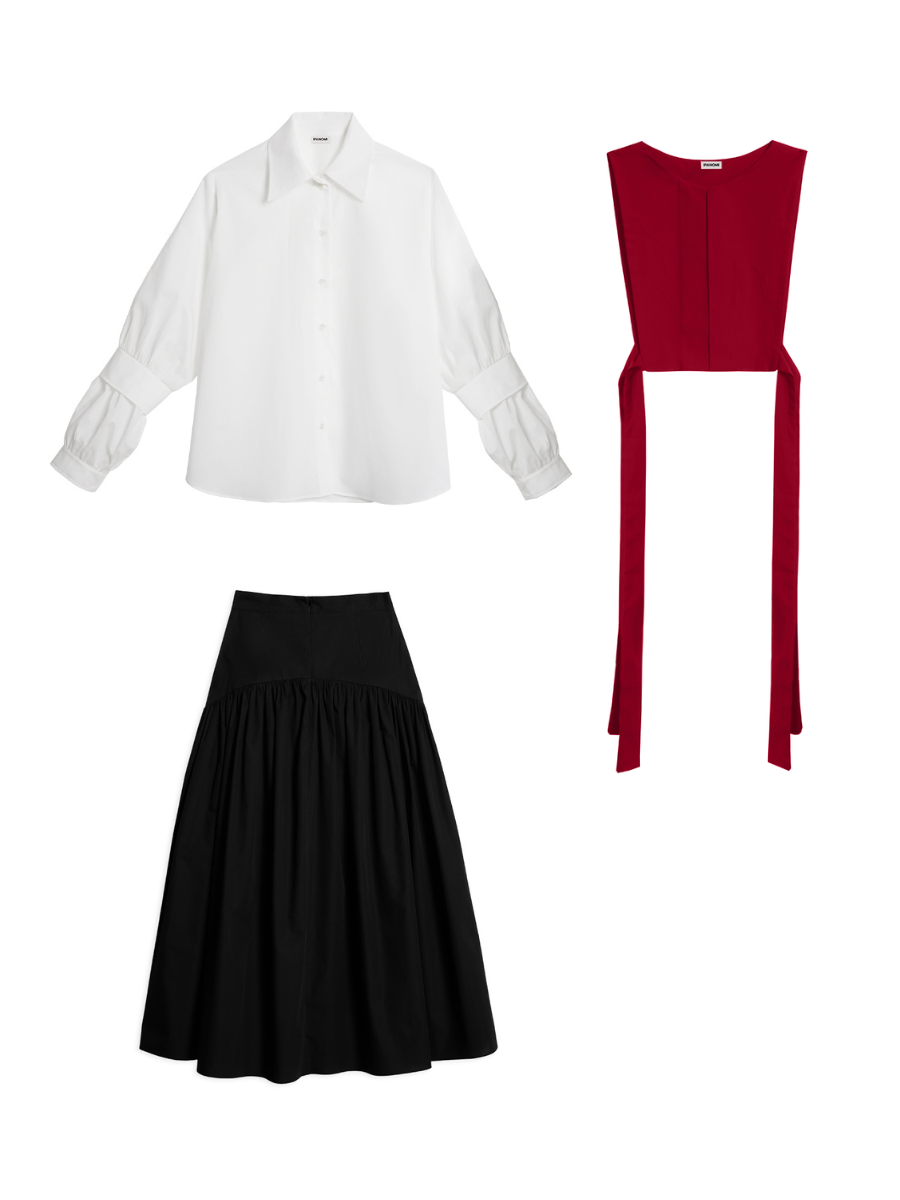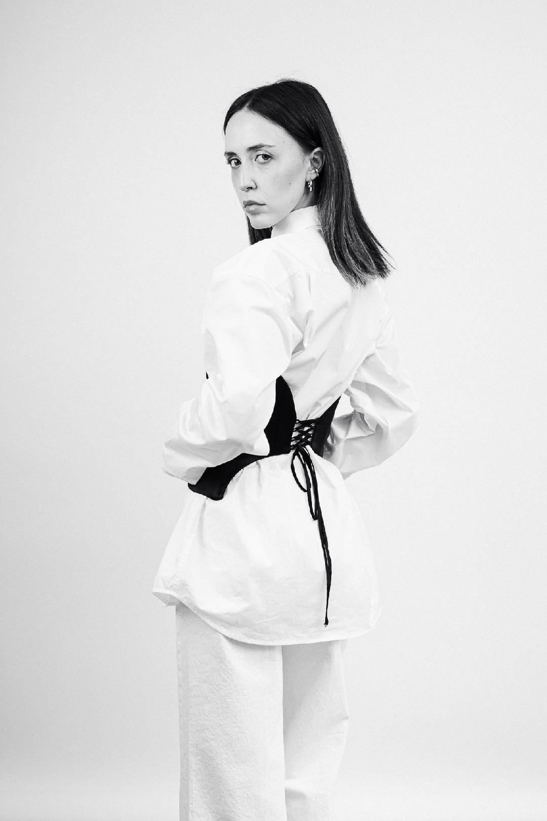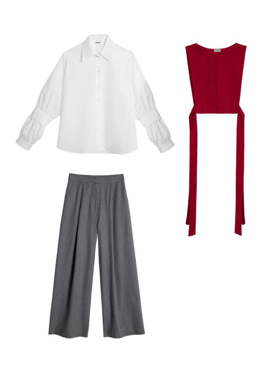 Our garments celebrate timeless design and modern femininity with a curated selection of wardrobe essentials. From signature shirts to structured corsets and bold bow ties, each piece redefines classic tailoring for women.