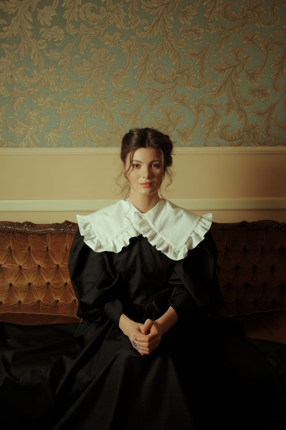 Created to enhance the beautiful feminine silhouette, with designs evoking a Victorian influence, this fall collection brings focus in mixing the luxuriant velvet dresses with crisp cotton shirts and collars.