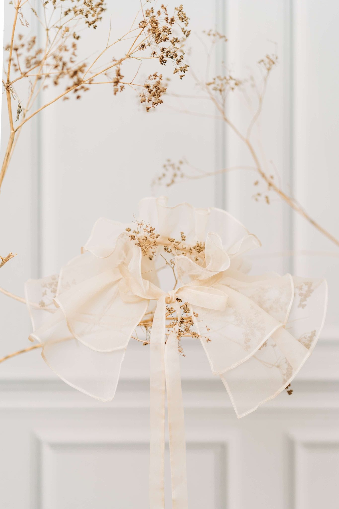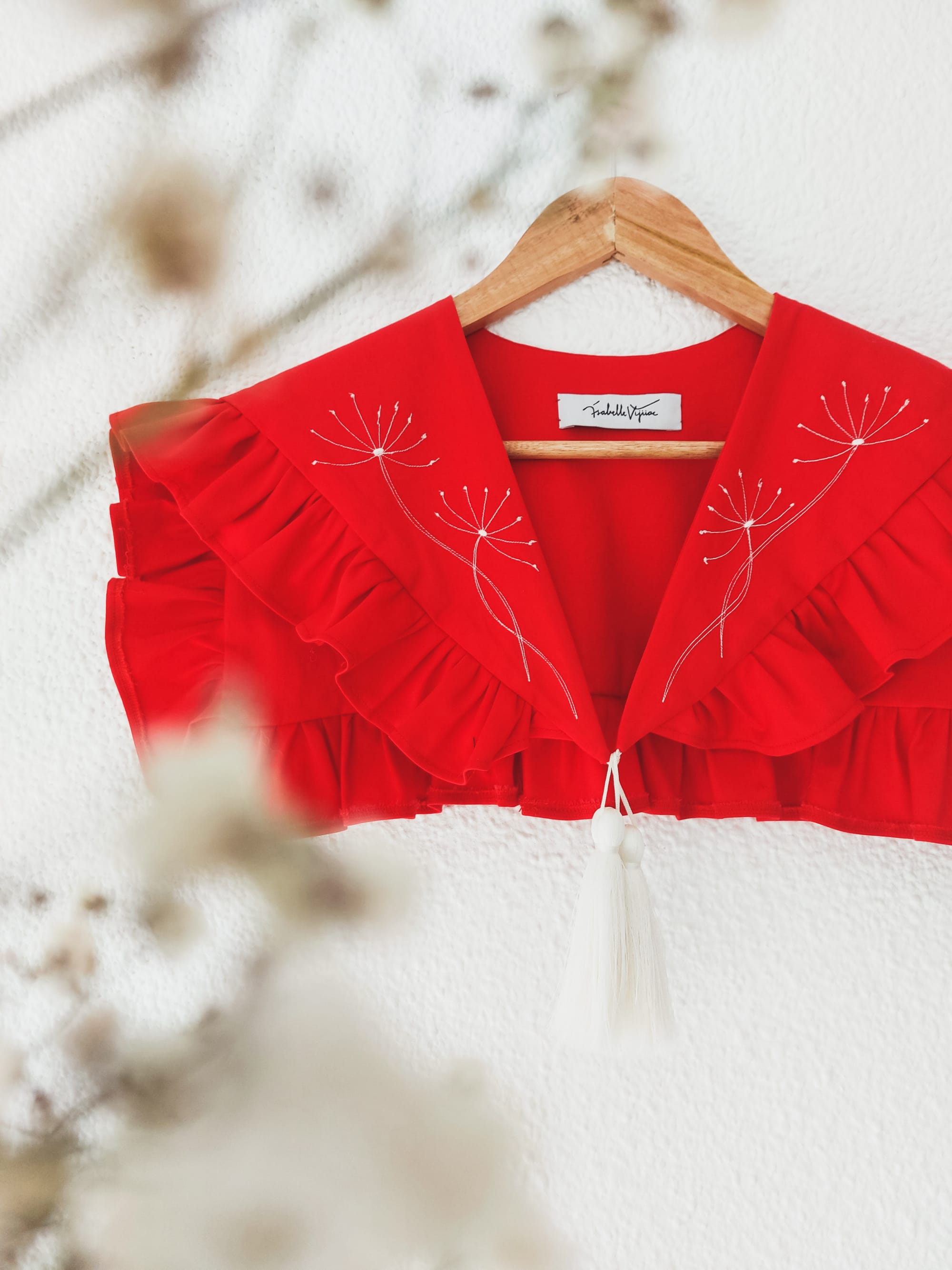Our proposal: a versatile collar made from organic cotton poplin that adds a touch of magic to your outfits. With its long ties, it can be worn over a white shirt or a light blouse, effortlessly preparing you for the holiday season.