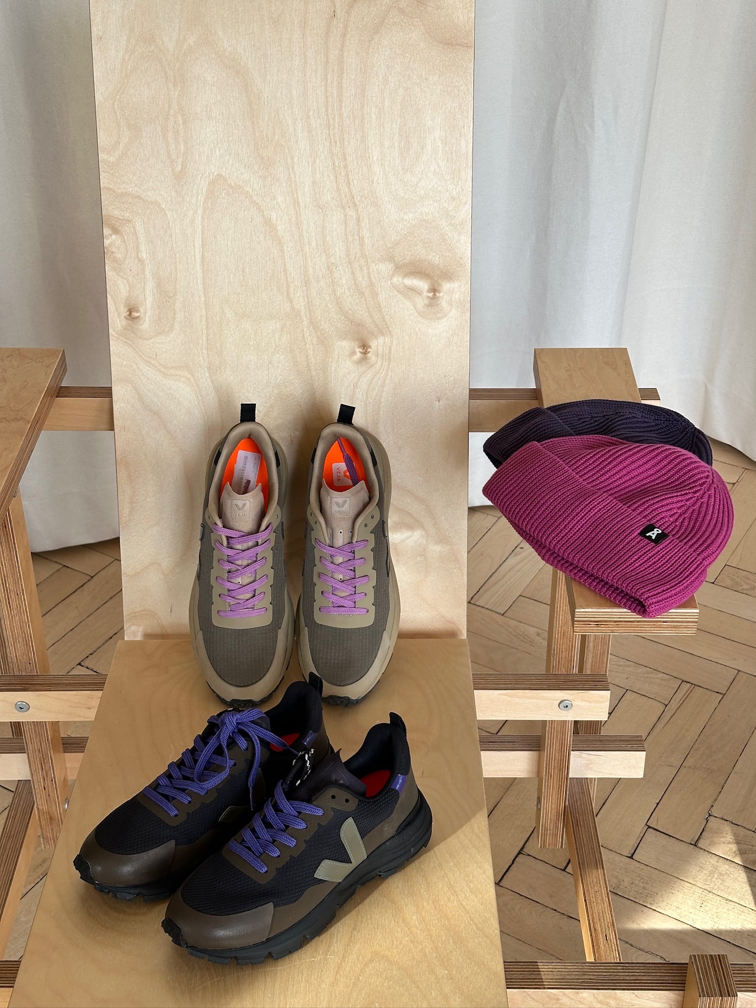 - Winter sneakers + beanies for her