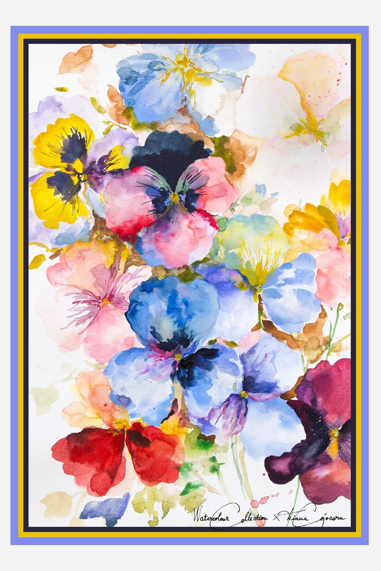 Add a touch of artistry to your wardrobe with the exquisite scarf collection by artist Diana Cojocaru. Each piece showcases her signature watercolor-inspired designs, featuring vibrant floral motifs and delicate brushstrokes that beautifully capture the essence of nature.