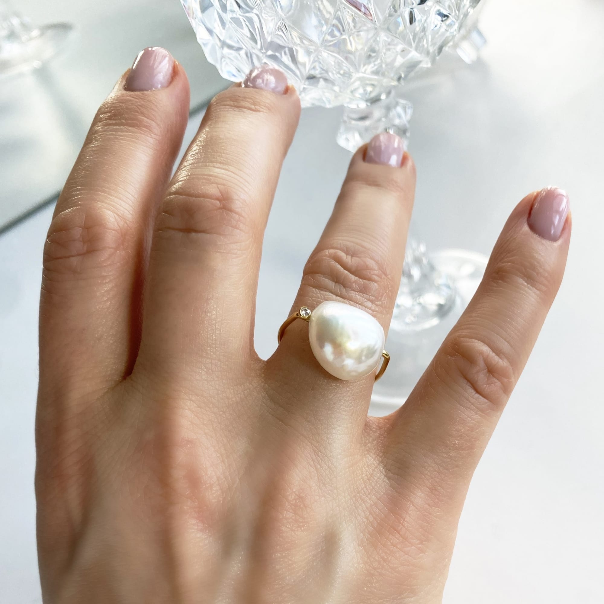 One of the most beloved pieces of jewellery in the gallery is the pearl and diamond ring designed by Dolly Boucoyannis. I also wear it every day, and I know I wanted it for many years before I even had the gallery. Did I convince you?