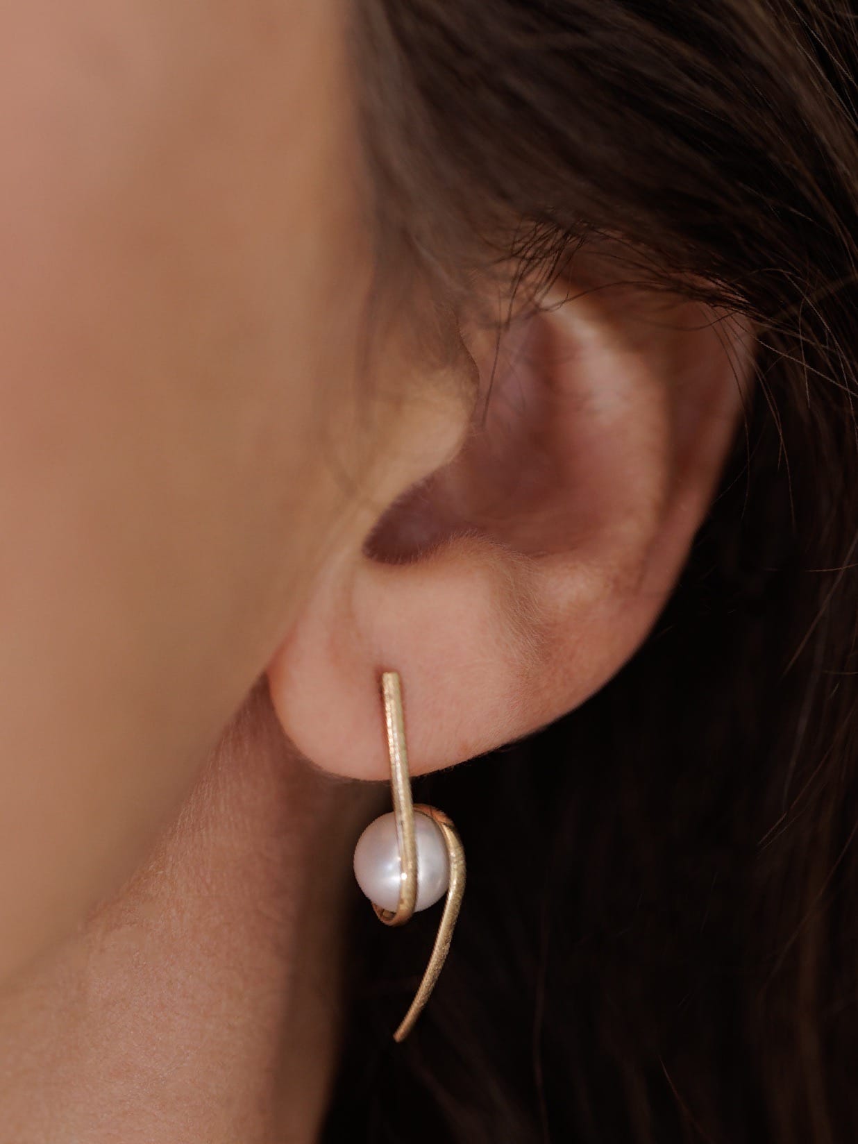 1. The wrapped pearl earrings in 14K gold ; 2. Totem Dog Earrings Gold, photo by Zenobia Lazarovici