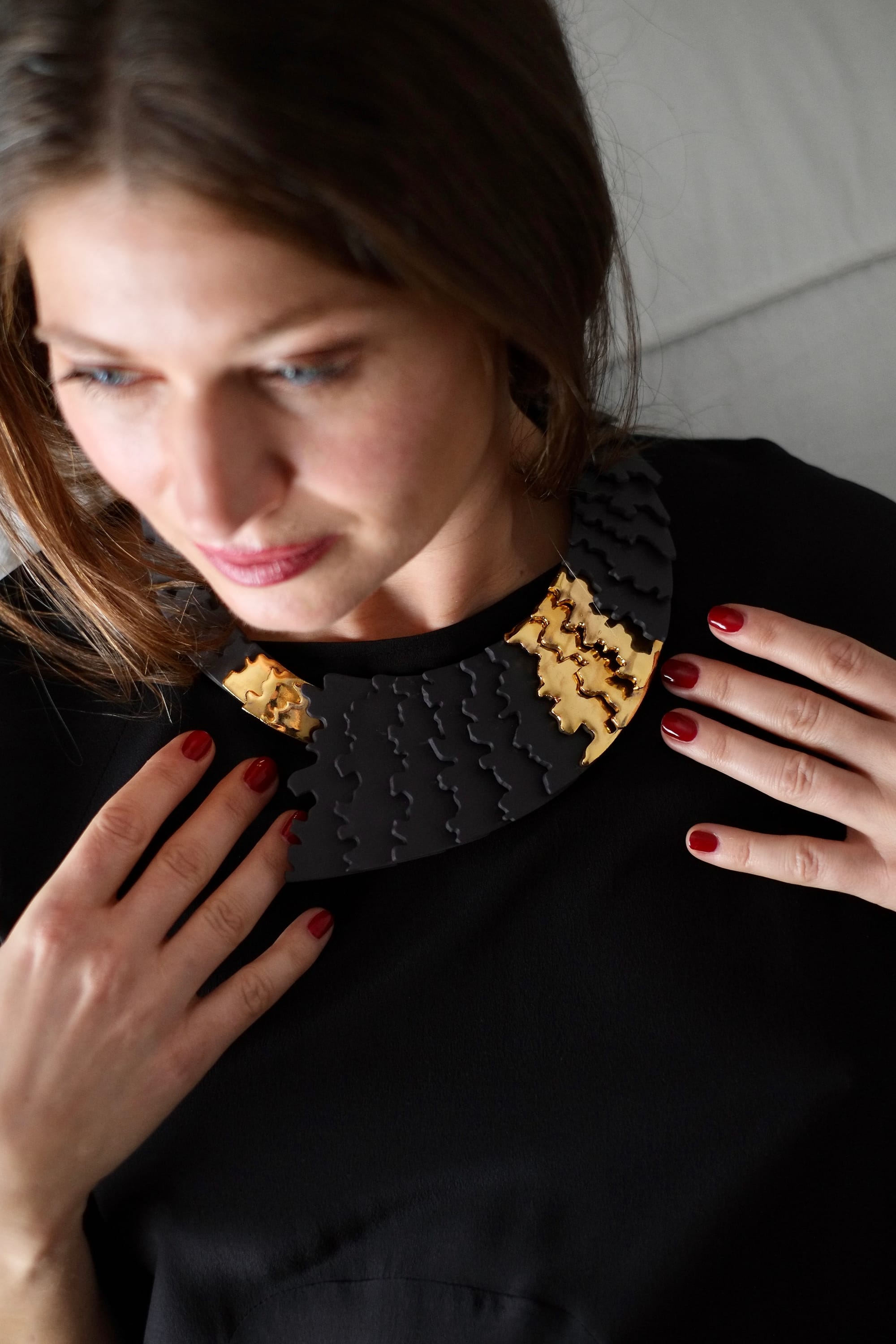 Hailing from New York, Ausra Bankauskaite, a Lithuanian-born artist, introduces the concept of modular jewellery. Her contemporary pieces bridge the worlds of art objects and jewellery, focusing on structure and functionality, resulting in minimalist modular jewellery that can be worn in various ways.