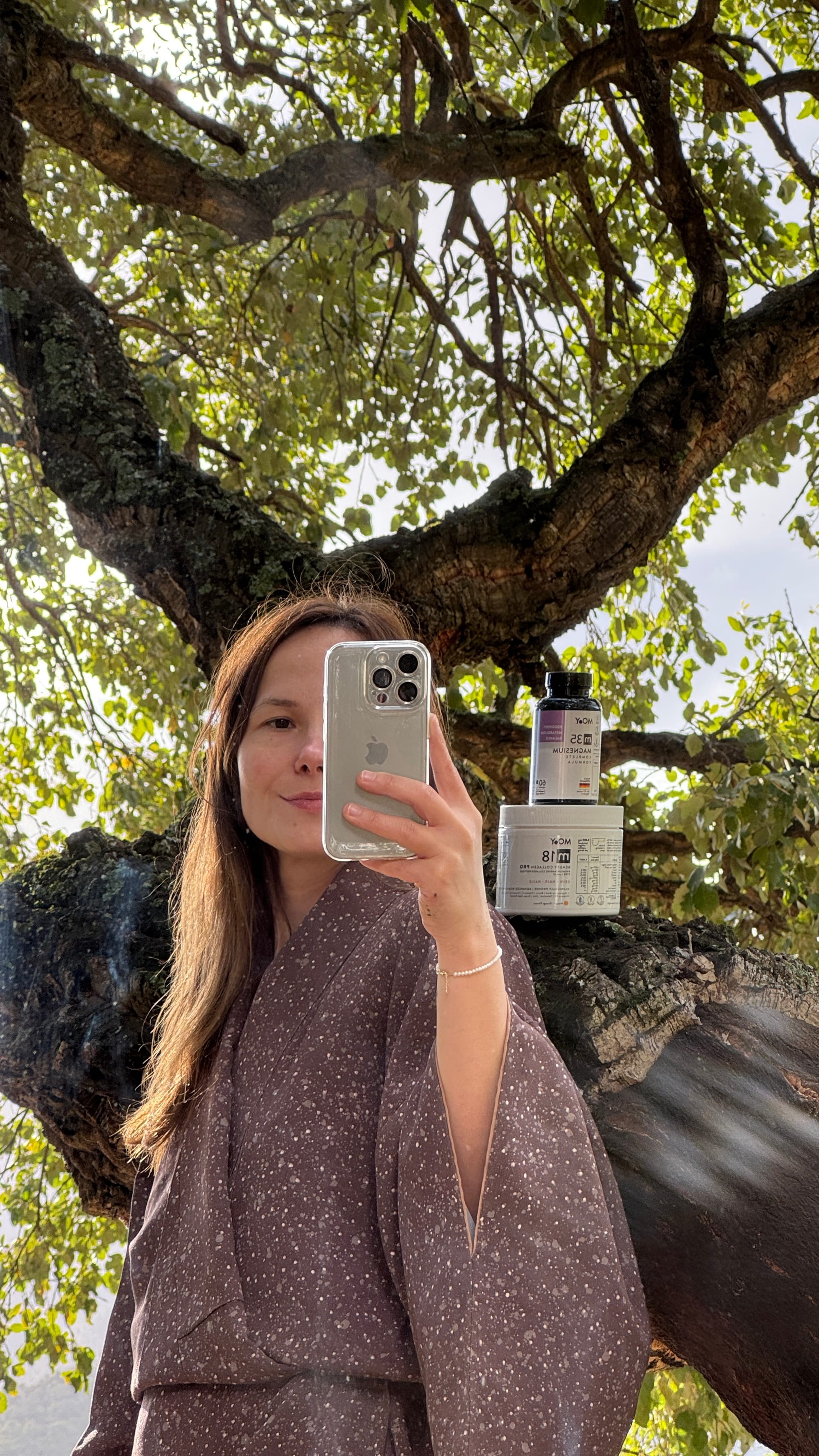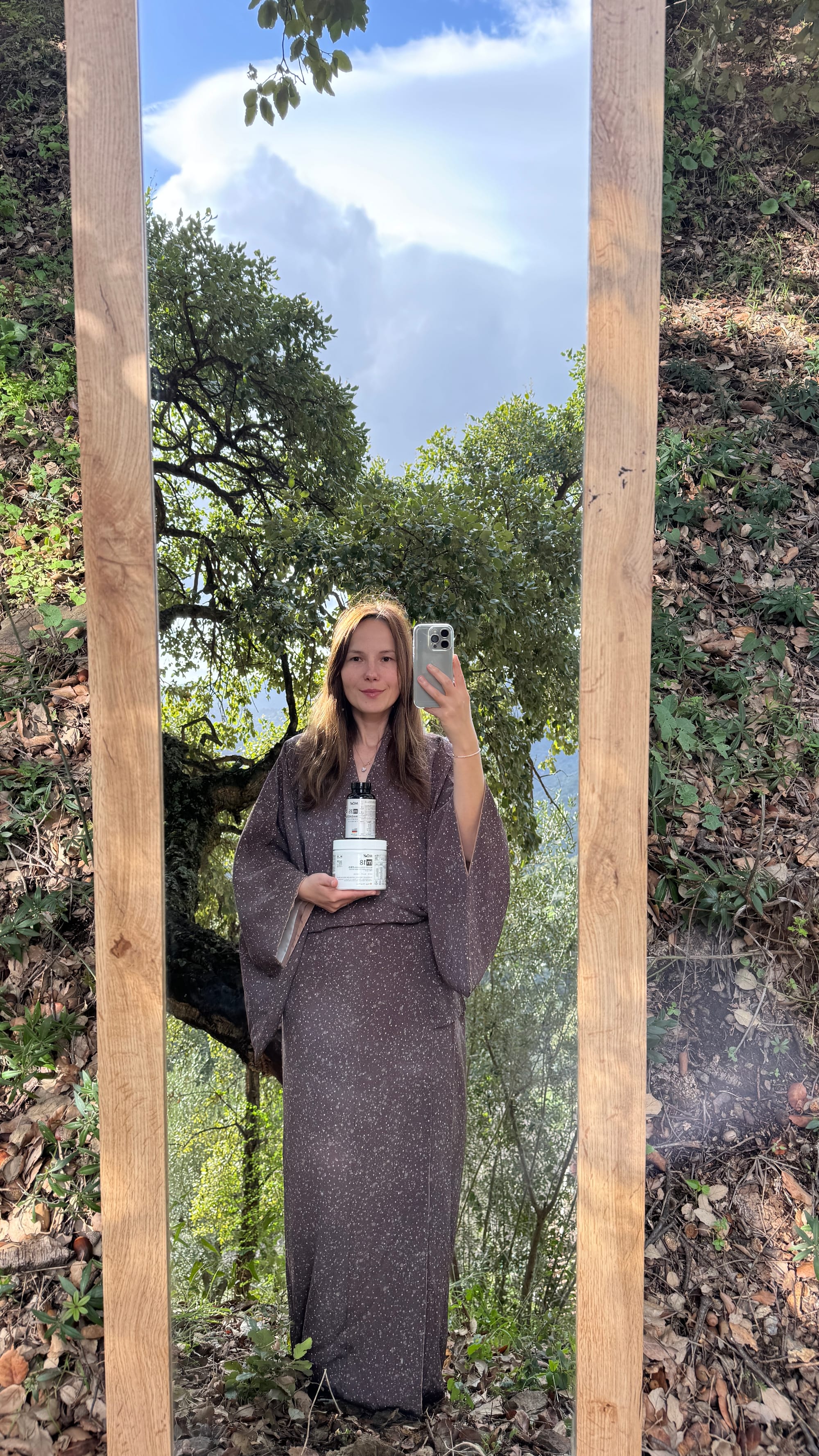 I also chose to use a mirror in these photos because I wanted to look at myself the way I look at nature: without judgement or the urge to correct, to enhance, or to improve. The mirror reflects not only my face and body but also time, care, and acceptance. It serves as a reminder that how we see ourselves matters as much as how we take care of ourselves.