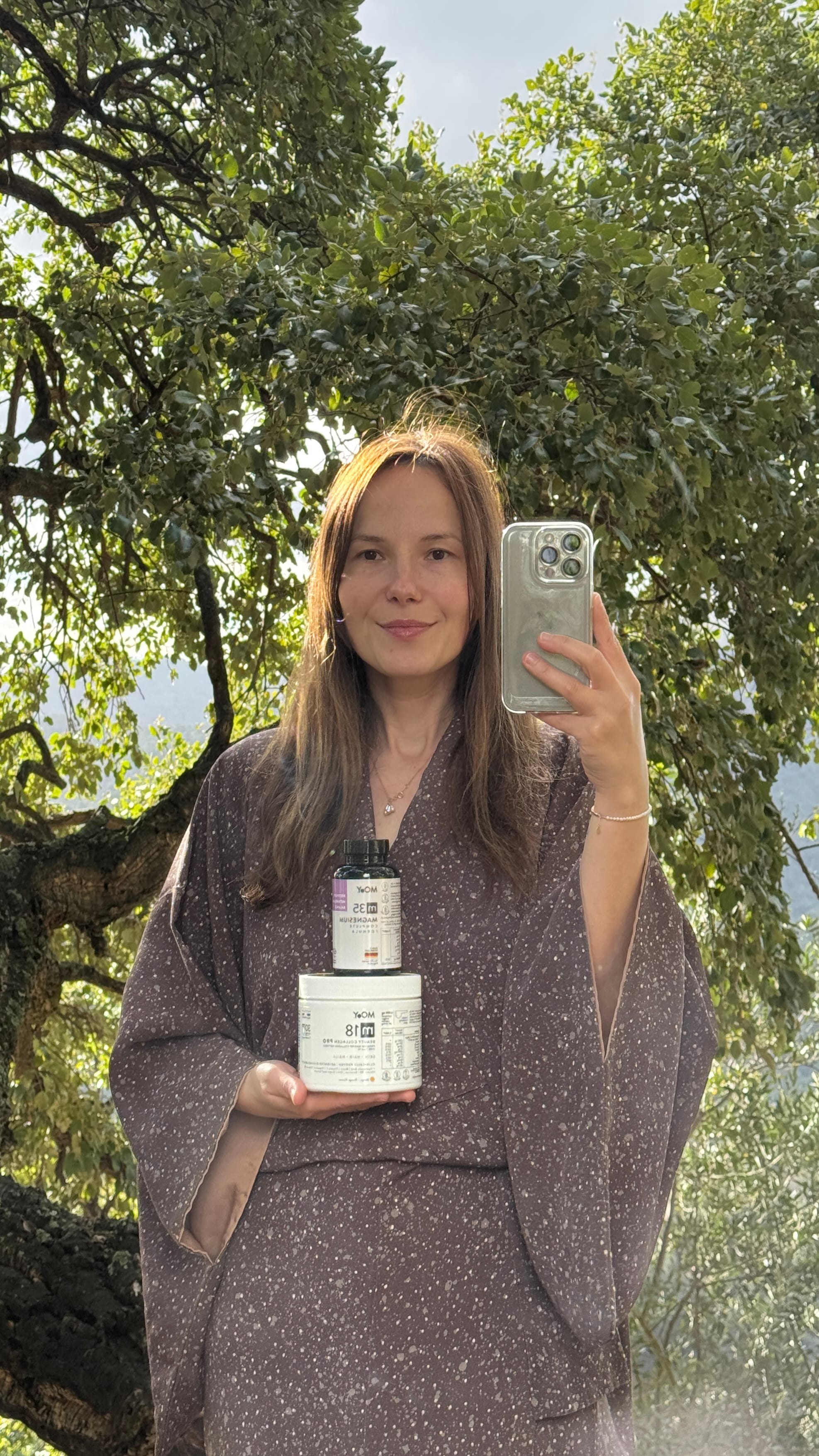 How do I do that? Well, starting last year, in November, I began to consume M18 Beauty Collagen Pro for skin, hair, and nails. I want to highlight this: I don't trust and I don't promote products that promise miraculous results. Taking care of yourself requires hard work and involves many aspects, not just taking supplements. But as I wrote in my previous articles (you have the links below), this collagen helped me so much with my hair regeneration (look at my baby hair!!!) and improved my skin texture. I don't look younger, and I would rather not look younger, but I want to assist my body from within to be healthy and strong. I help it; it helps me.