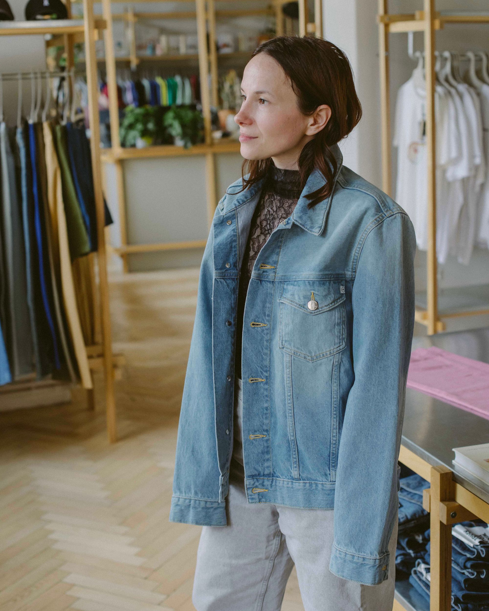 Ador, absolut ador să port o haină care mă leagă de o persoană pe care o admir, care aduce cu sine o poveste, al cărei proces blând de confecționare transformă lumea asta hâdă într-un loc mai bun, mai curat, mai cu viitor.