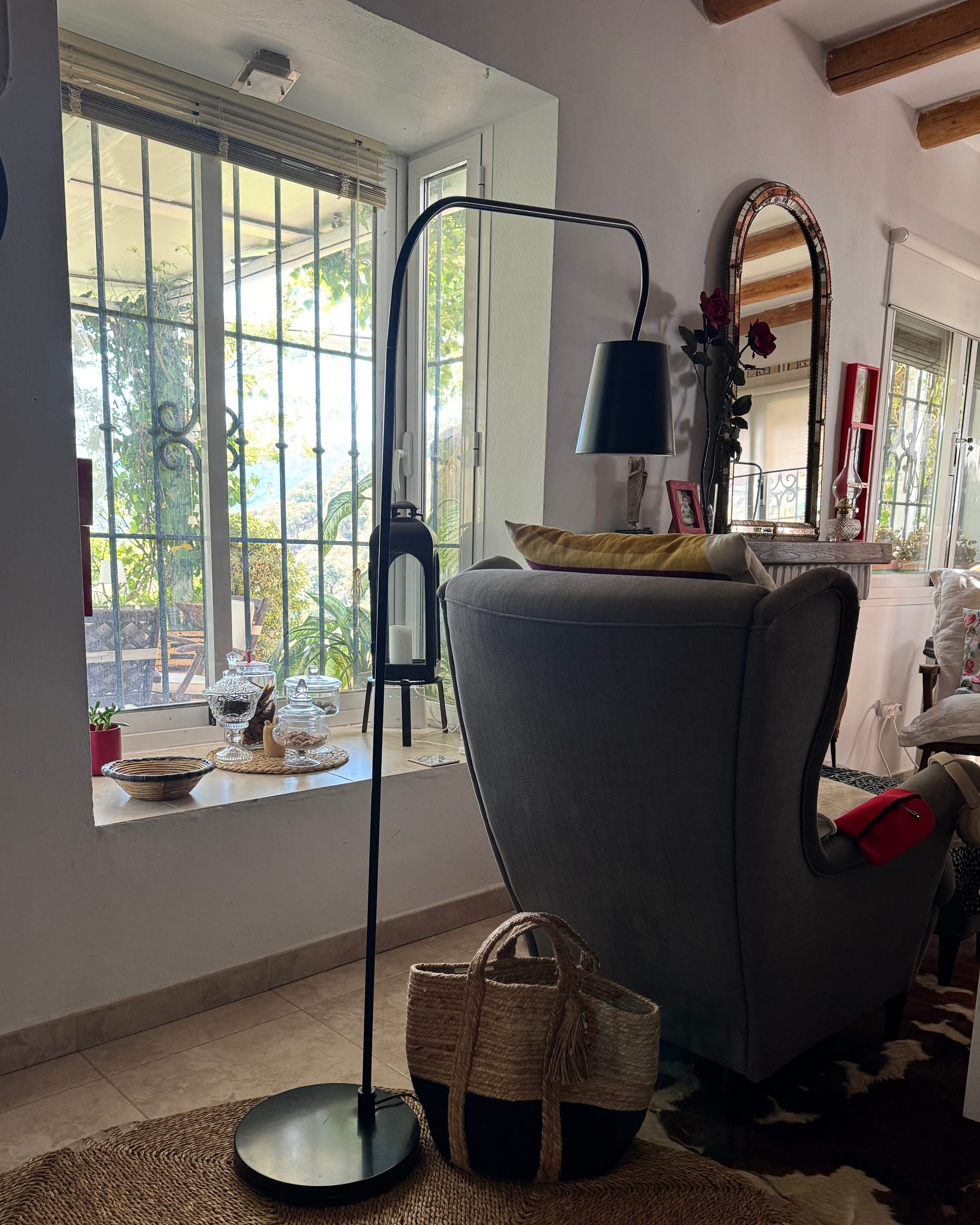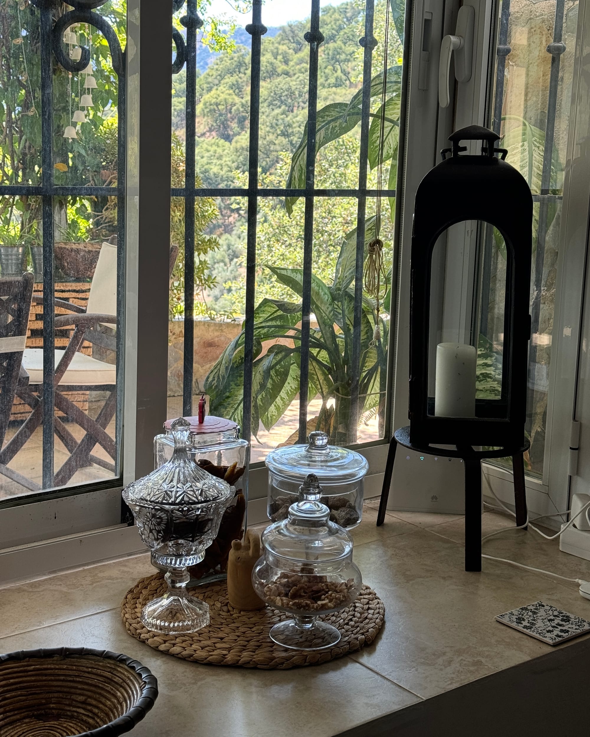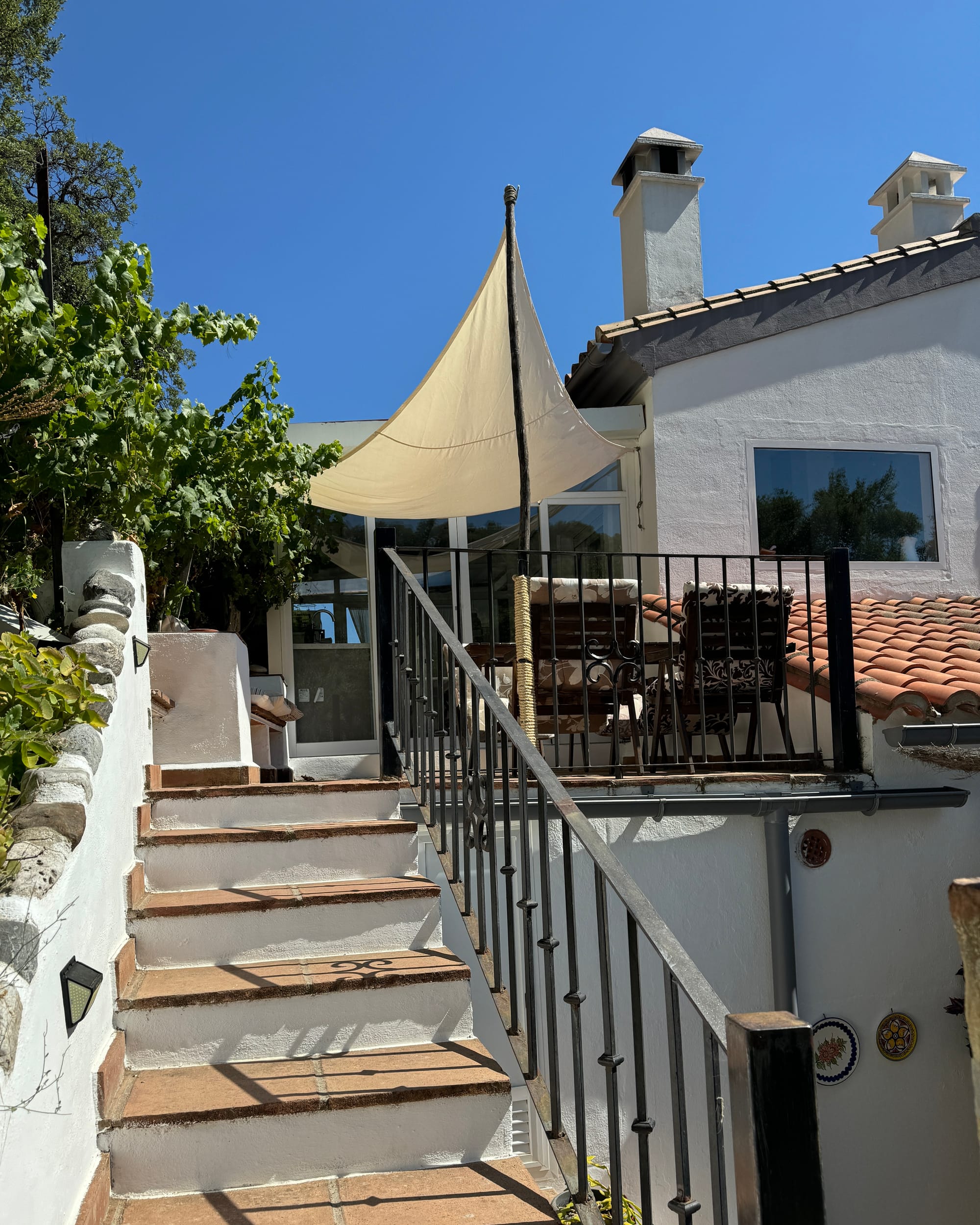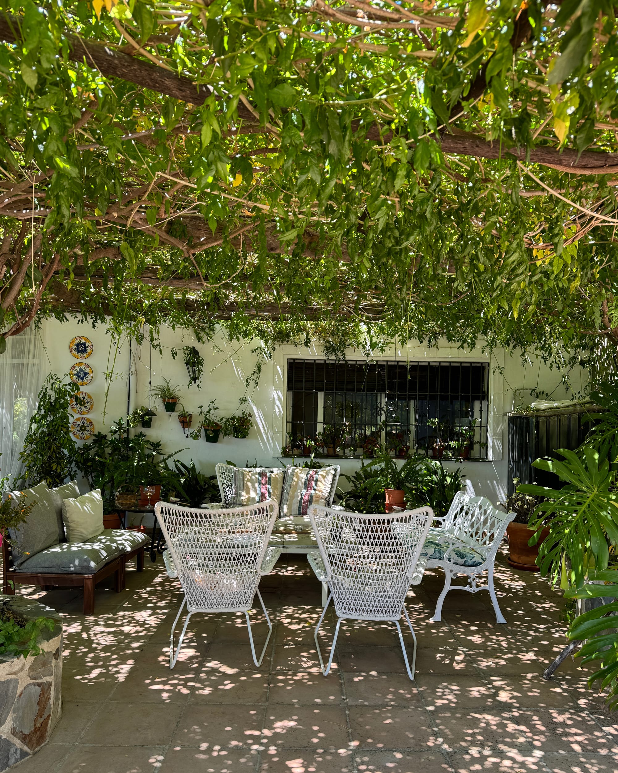 Decirte cuál es mi rincón favorito sería difícil porque no hay algo concreto. Todos los rincones tienen alma propia. No hay una sola piedra traída al azar. Todo está hecho con una dedicación, con esfuerzos, con un amor, entonces, este rincón donde estamos ahora me encanta a estas horas de la tarde. Pero en la noche, me encanta subir a mi habitación y ver todas las montañas porque las paredes son de cristales. Hay, me llena de satisfacción. Pero si nos vamos por el porche de la cocina donde está la piscina y me quedo ahí mirando las flores y mis plantas, digo: ¡qué patio más bonito tengo!