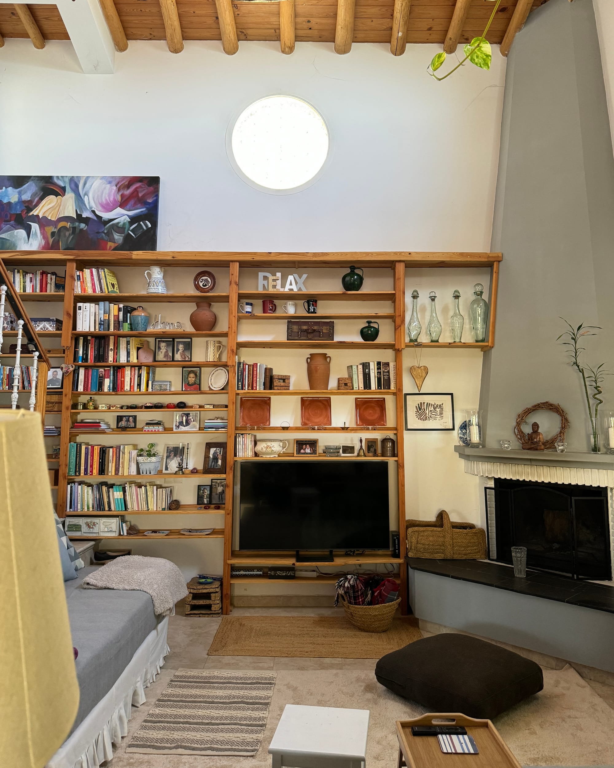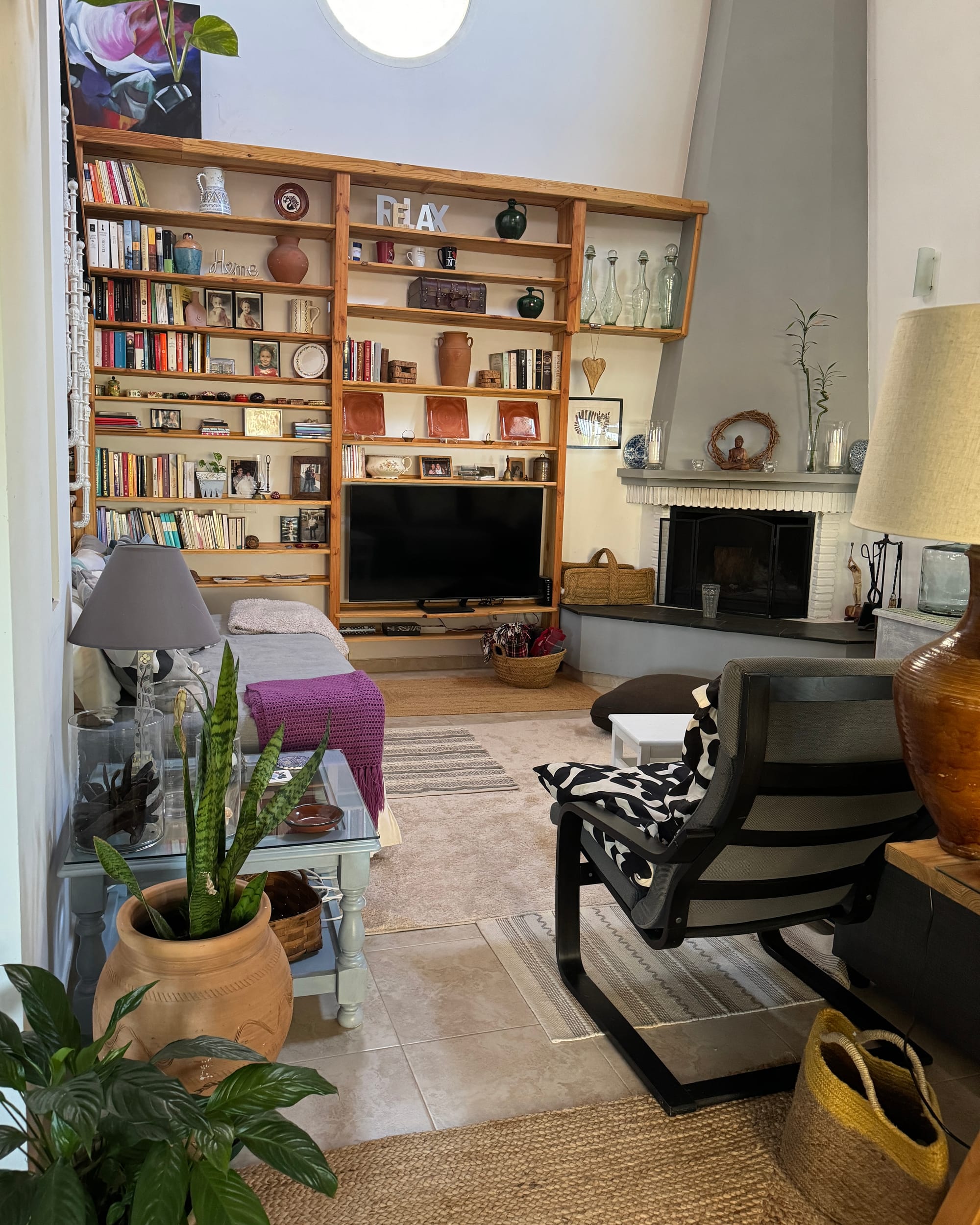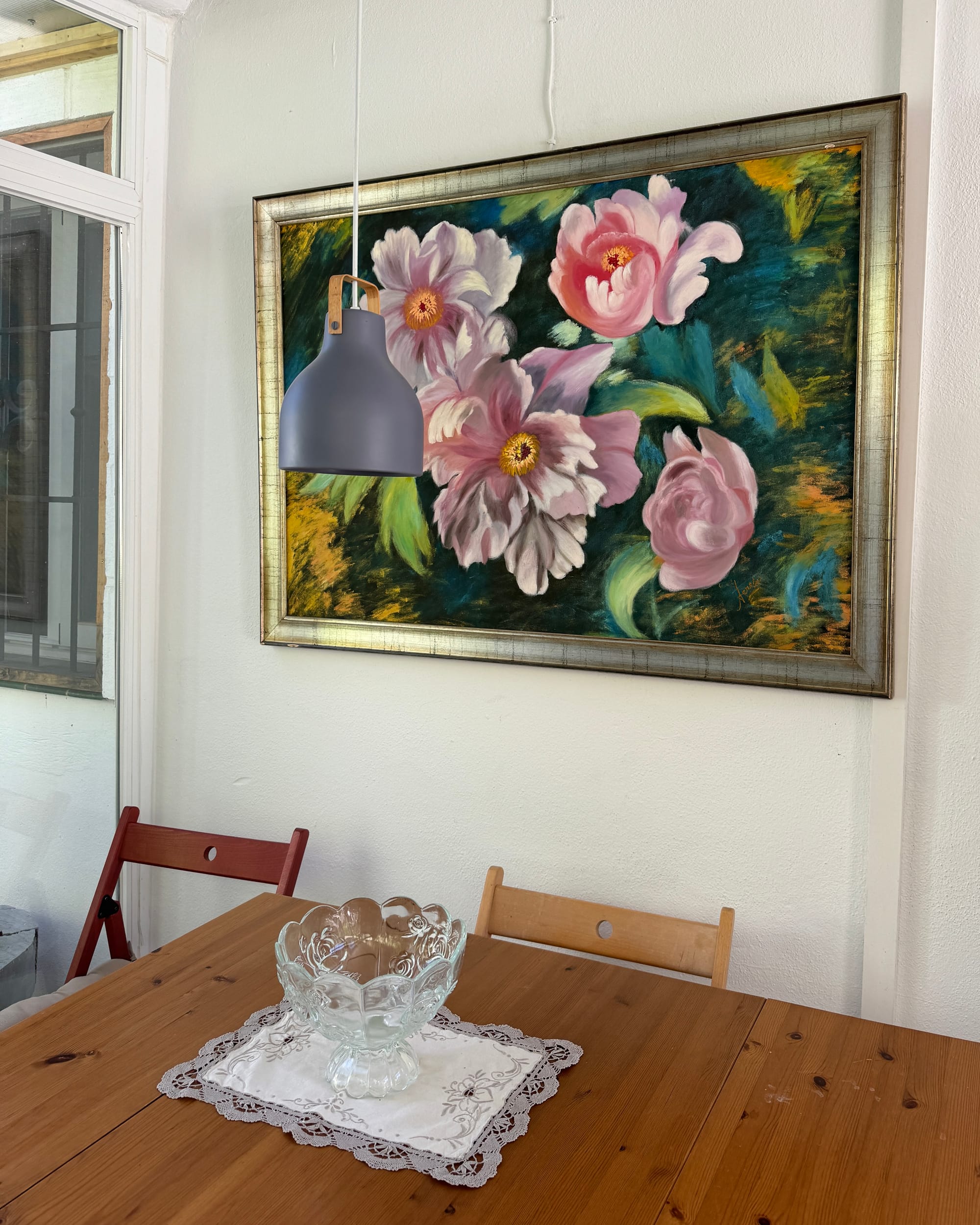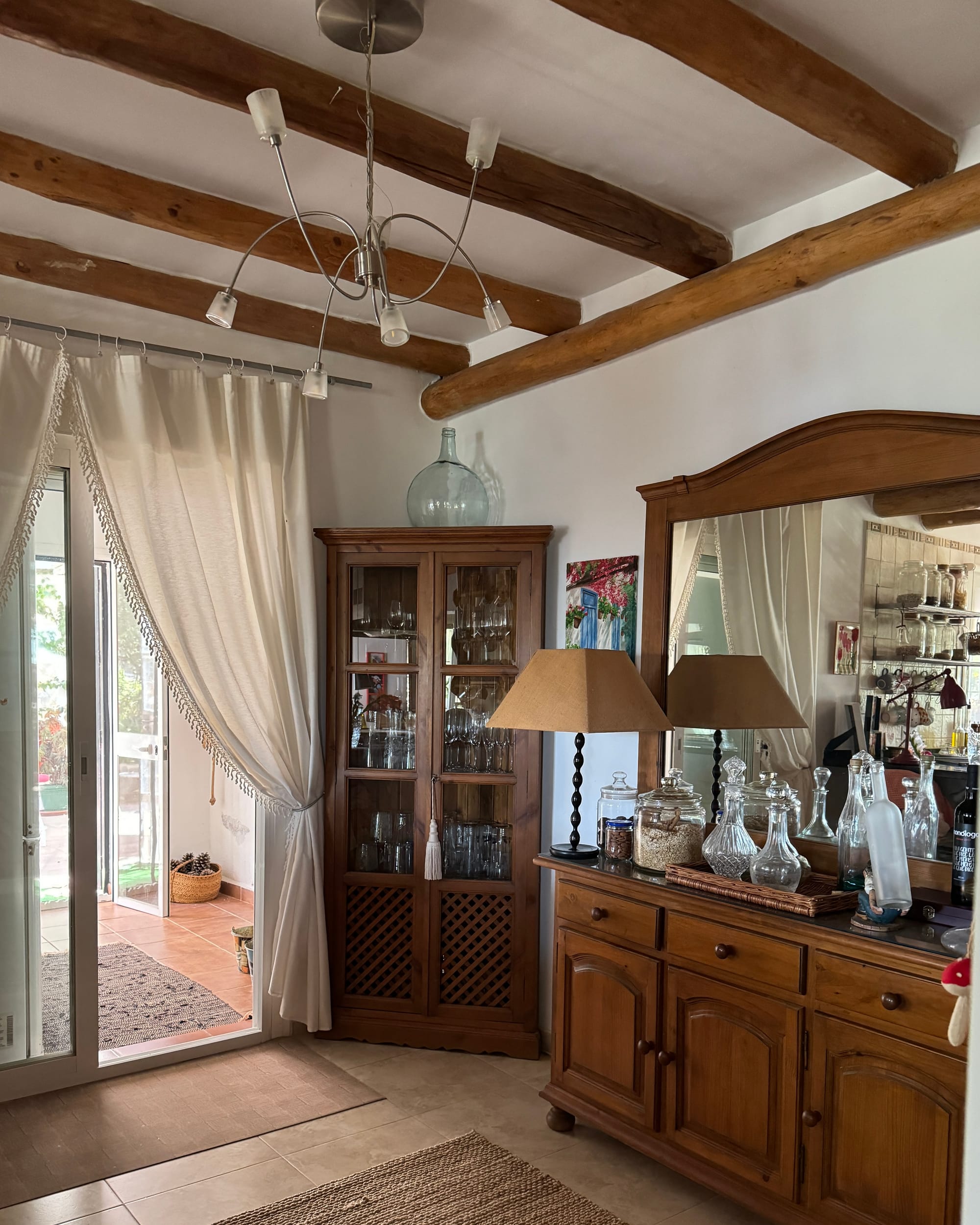 En el interior de mi casa me gusta el comedor de verano que todo es cristal, cada punto tiene una pincelada especial. y tiene un encanto especial para un momento determinado. Me siento satisfecha en cualquier rincón. En invierno, me quedo en este comedor de invierno con la chimenea encendida y mi mesa grande de trabajo, para sentir el calor de la chimenea cuando me llega. ¡Gracias, gracias, gracias a la vida por todo lo que me ha dado!