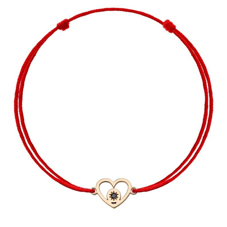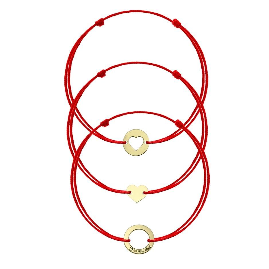 Brățări Mamă - Fiică - Tată, cu șnur din mătase, și pandantiv Iubire Infinită, din aur galben